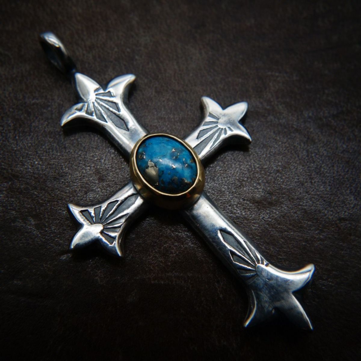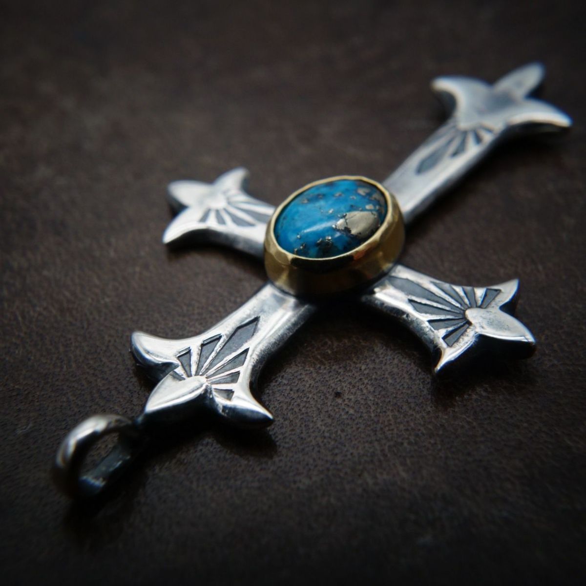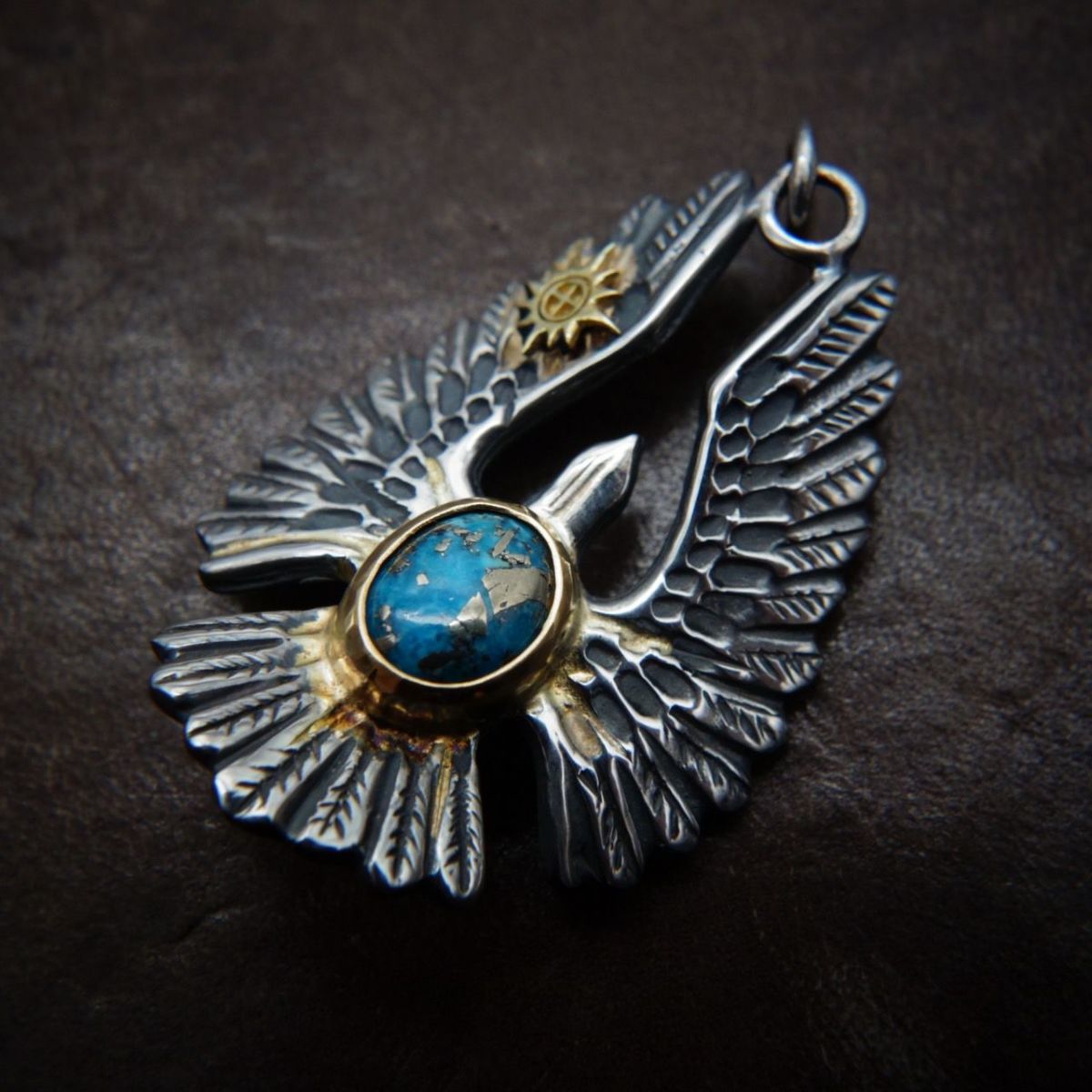 ターコイズ付きプレイングイーグルペンダントヘッド