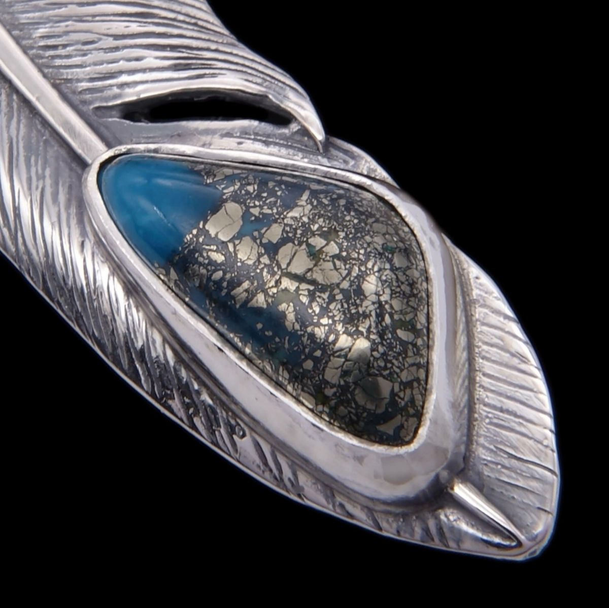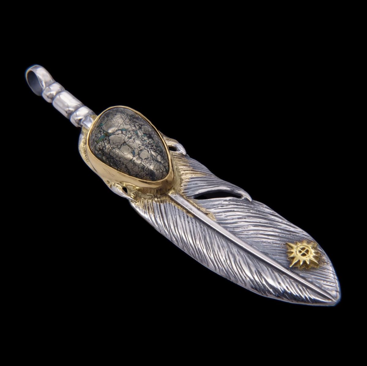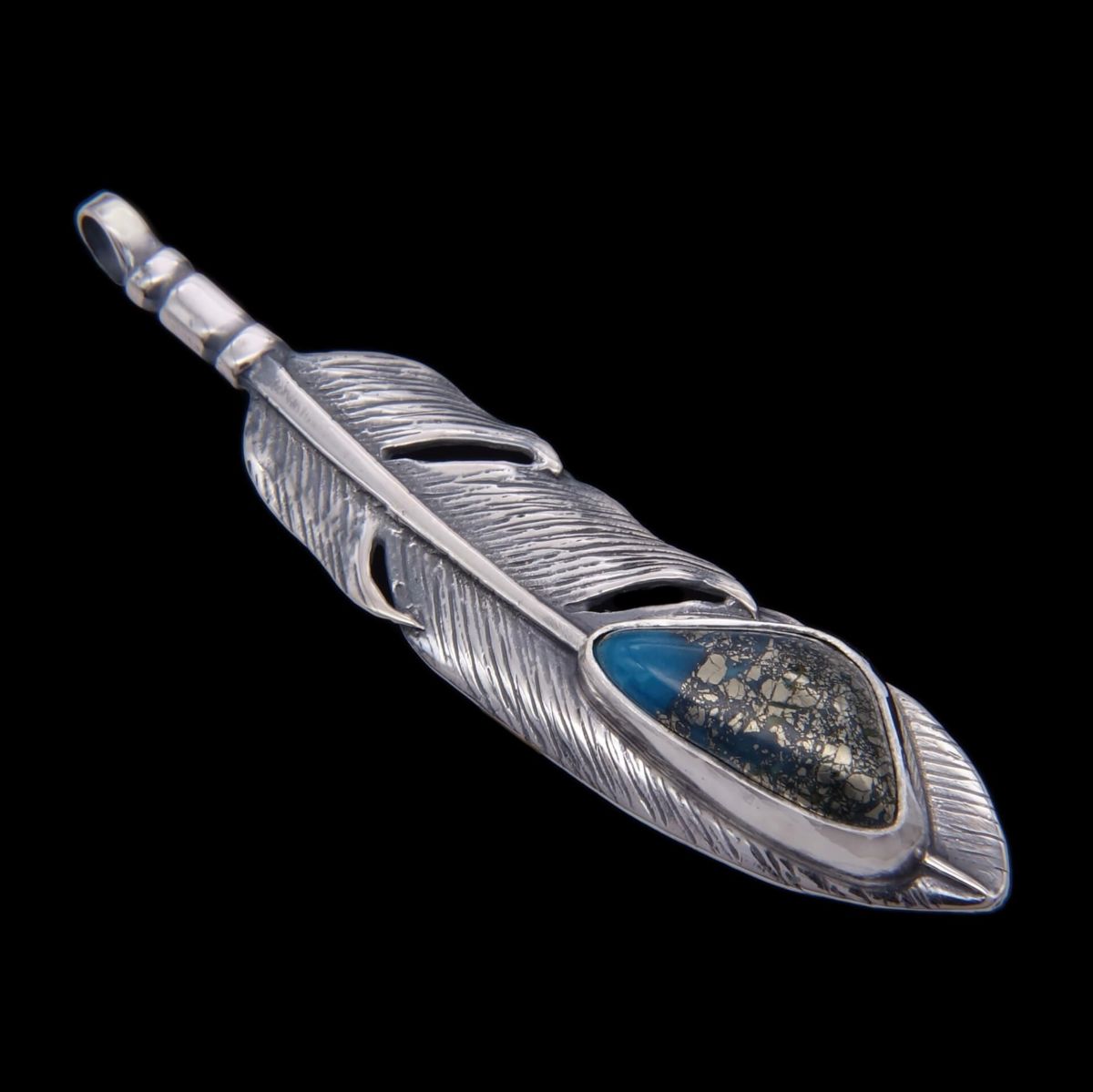 ターコイズ付き 大フェザー 左向き ペンダントトップ