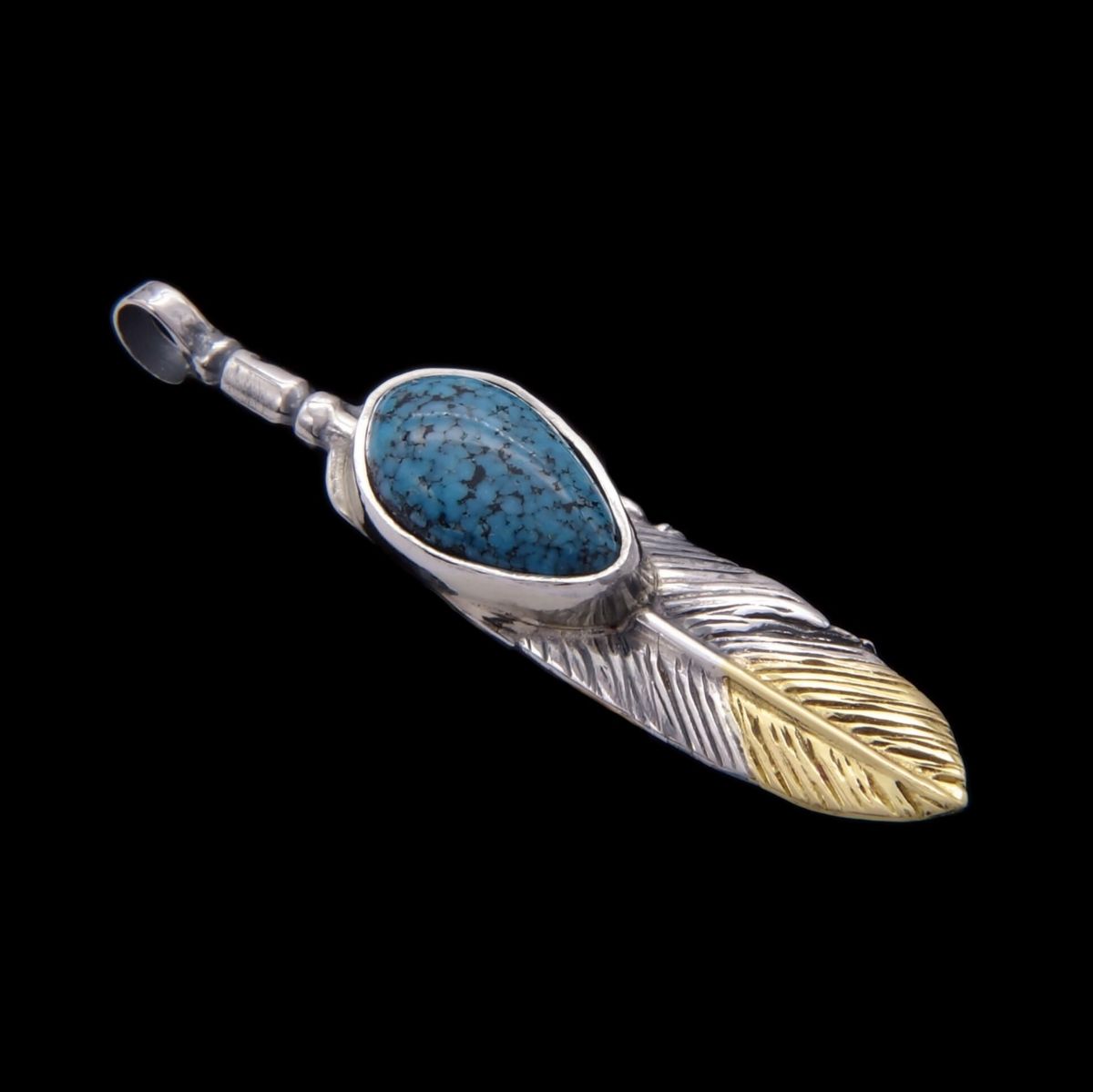 ターコイズ付き 小フェザー 右向き ペンダントトップ