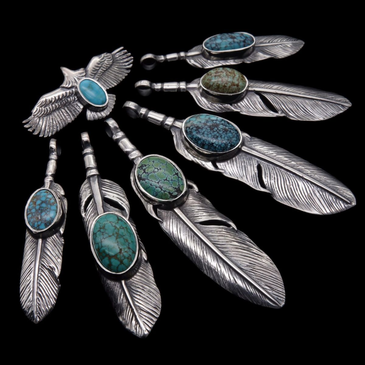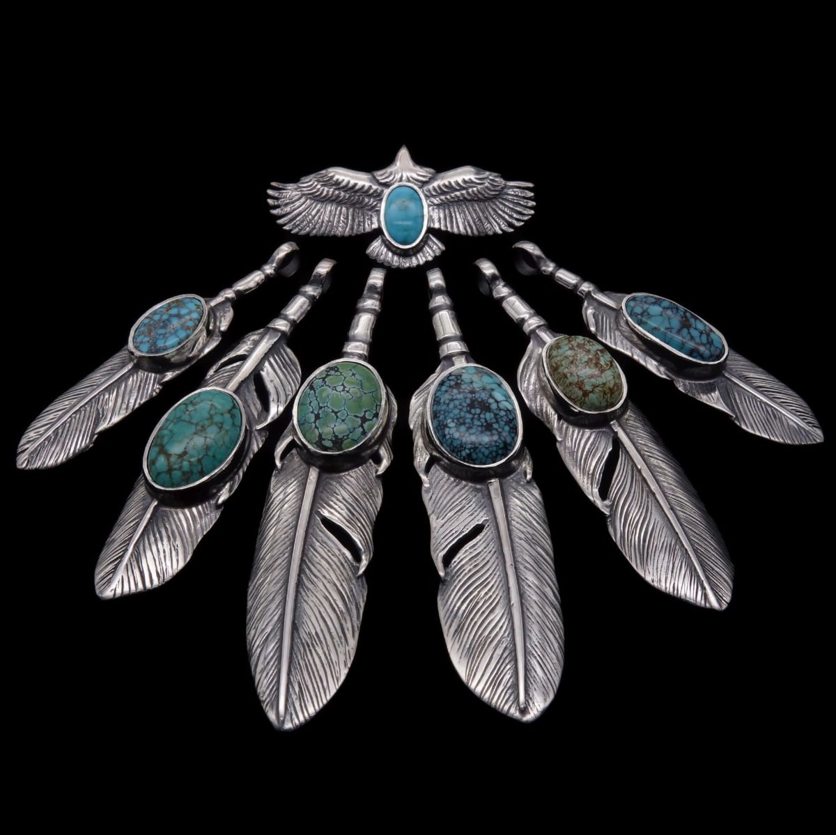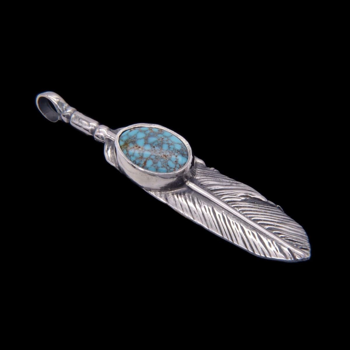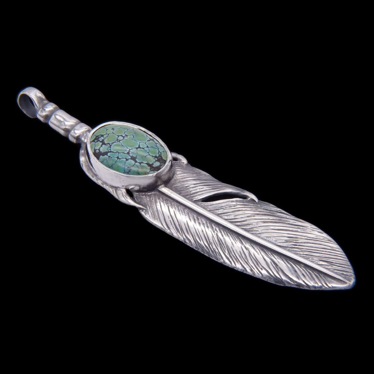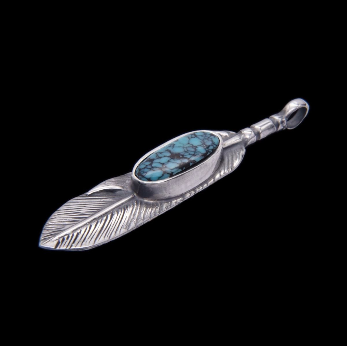 ターコイズ付き 大フェザー 左向き ペンダントトップ