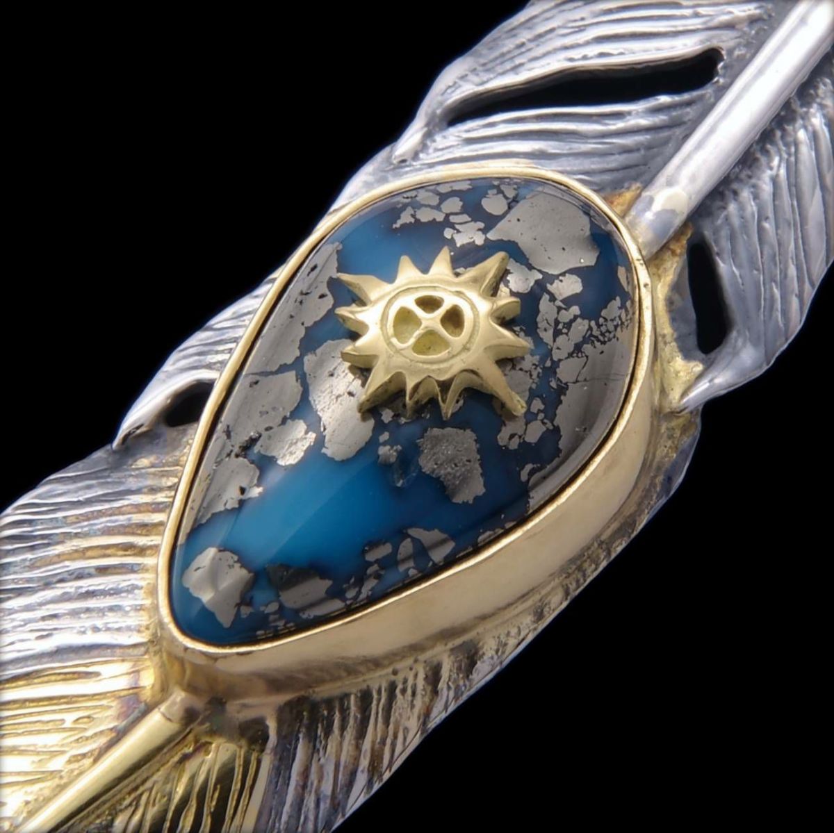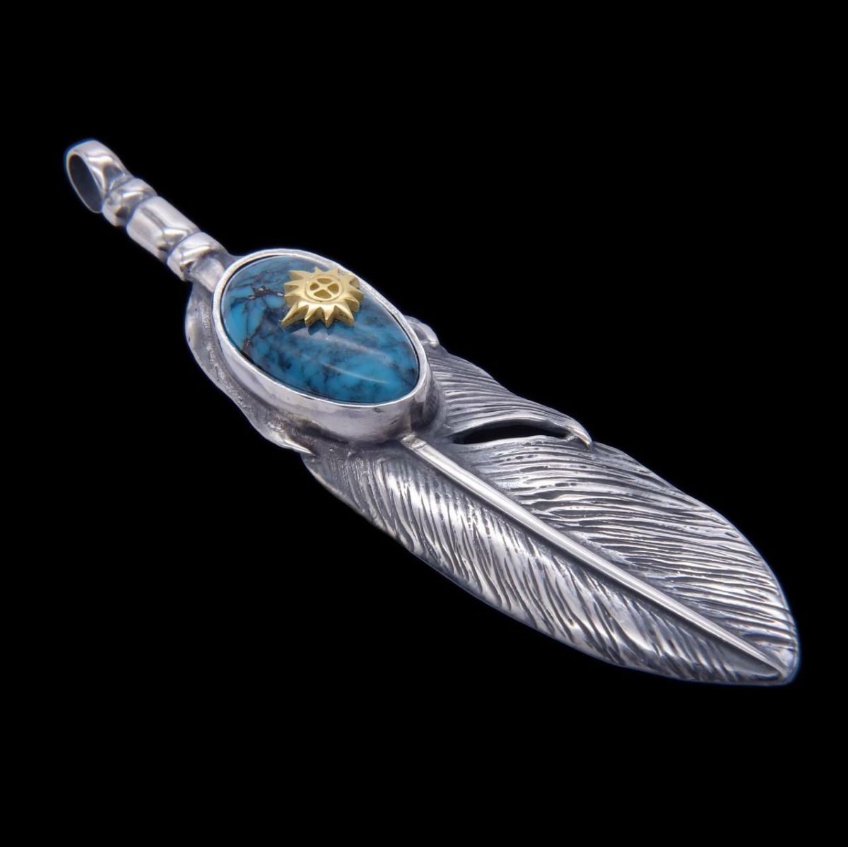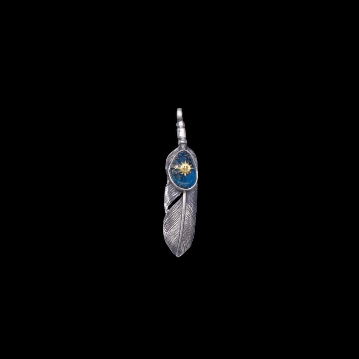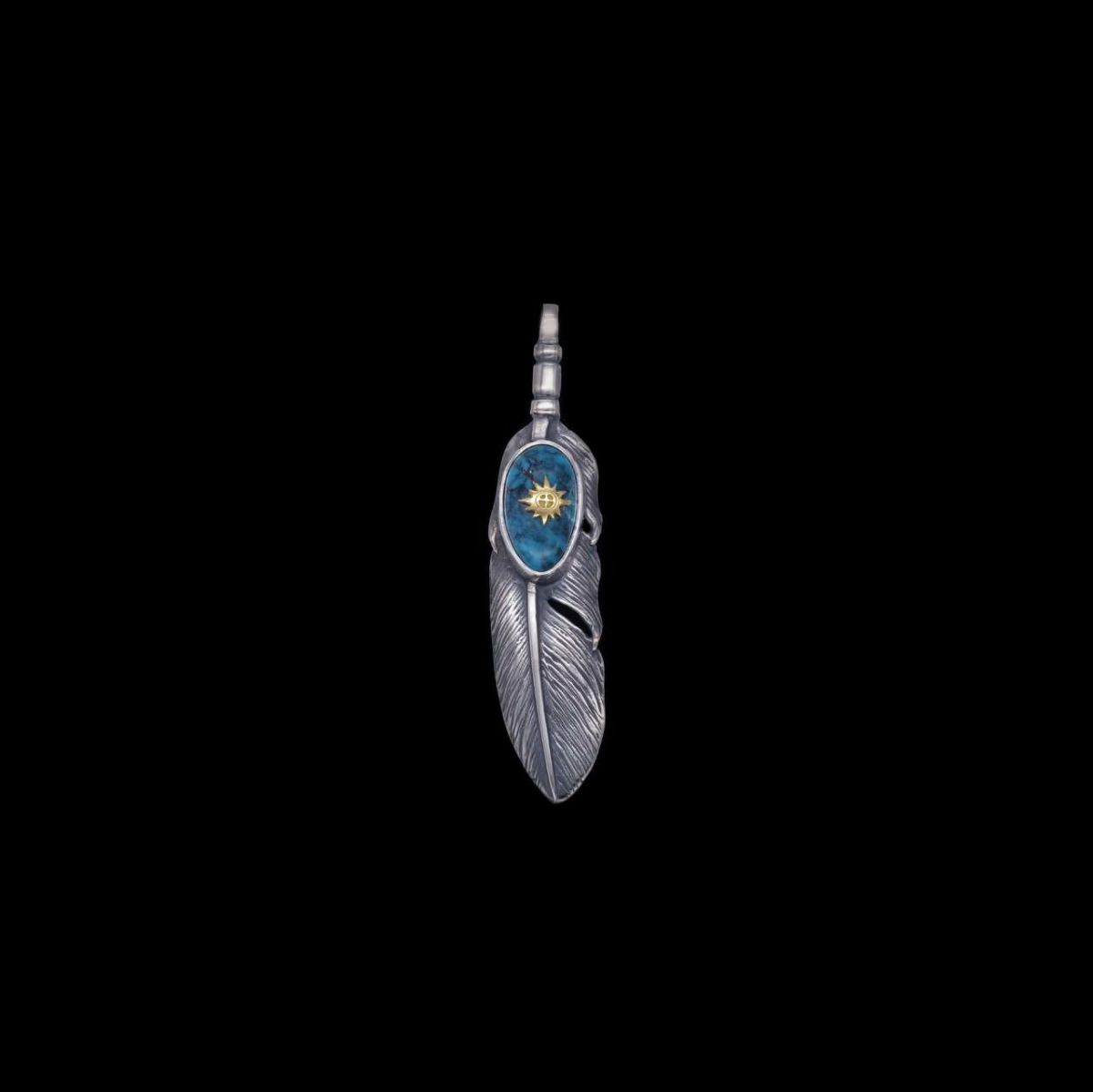太陽ターコイズ/メタル付き 中フェザー(右向き)
