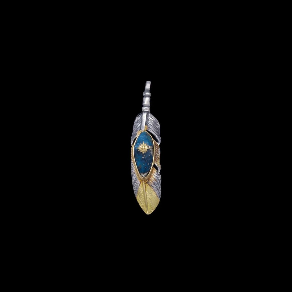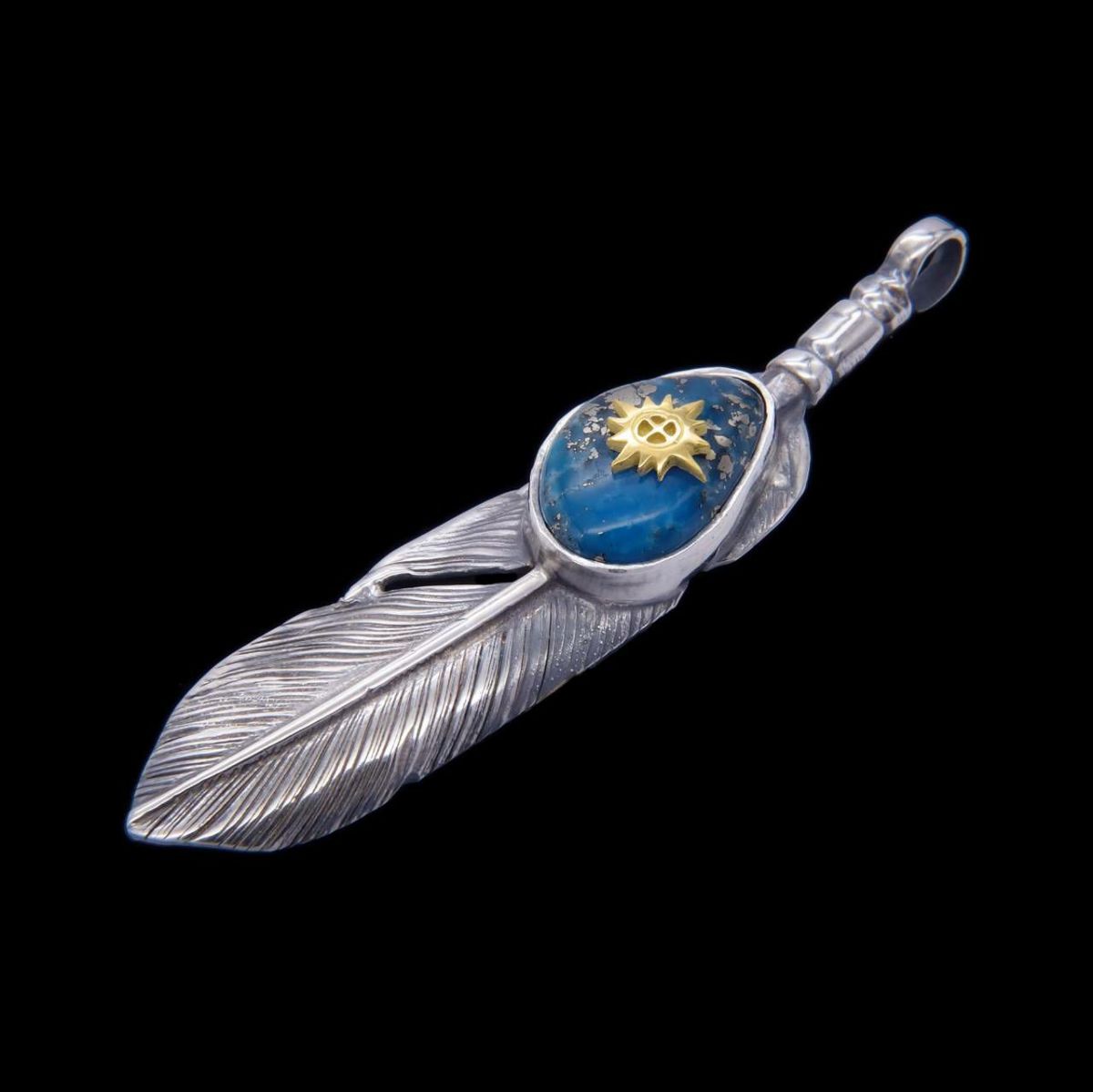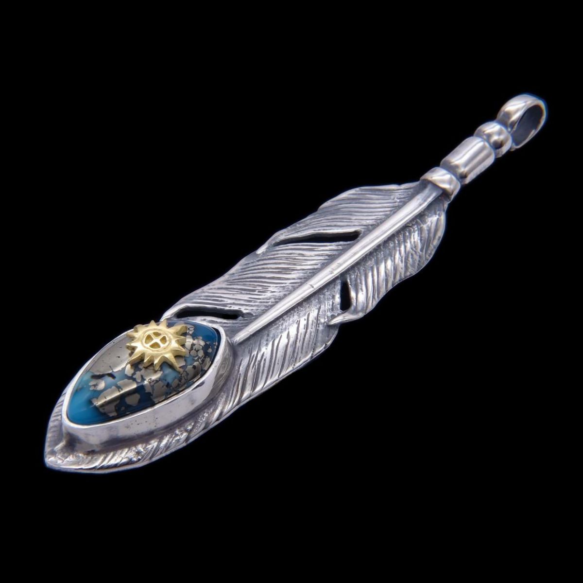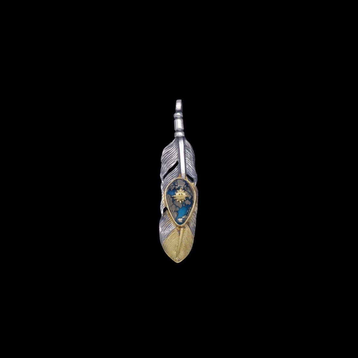 太陽ターコイズ/メタル付き 大フェザー(左向き)