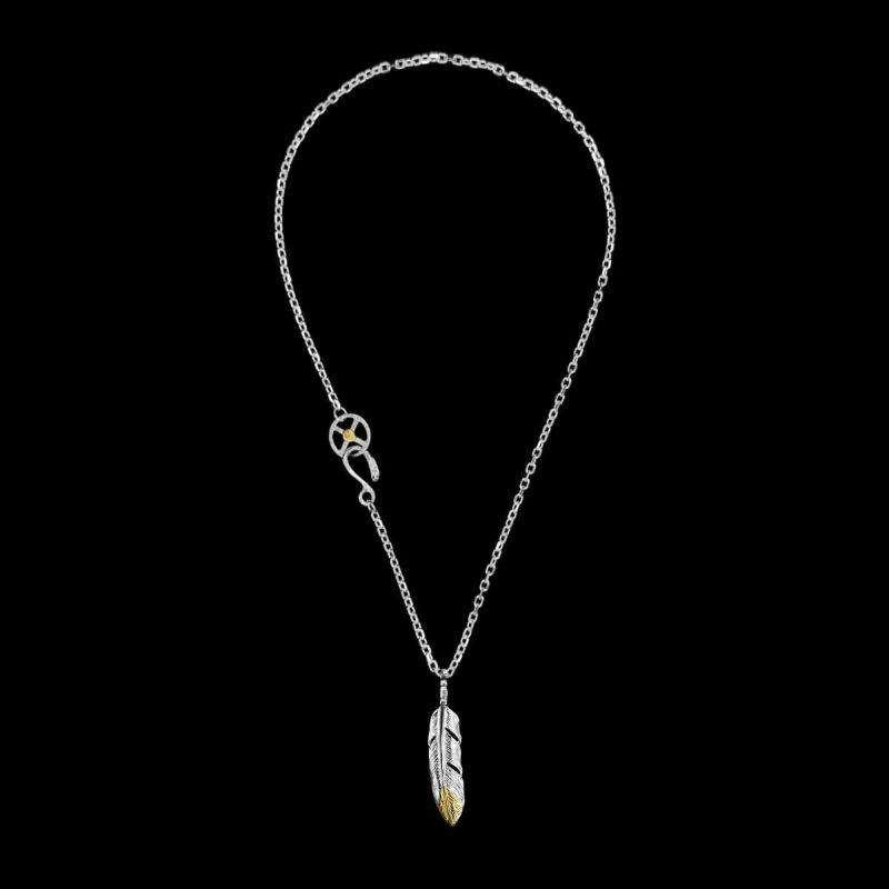 大フェザー左向き(コンビ)×チェーン(小ホイール+イーグルヘッドフック)/ネックレスカスタム