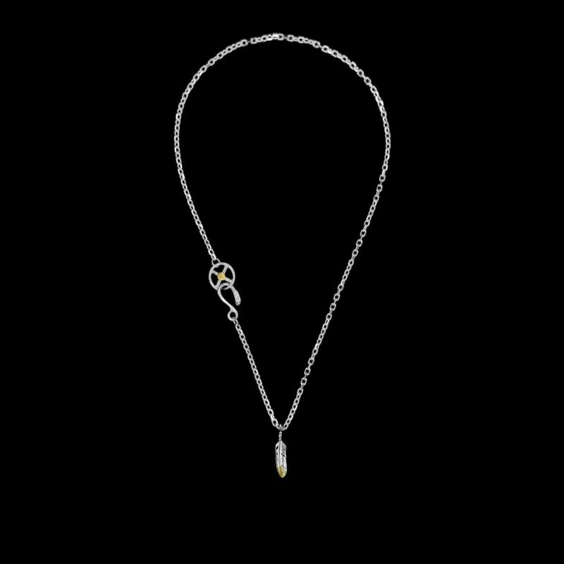 極小フェザー左向き(コンビ)×チェーン(小ホイール+イーグルヘッドフック)/ネックレスカスタム