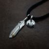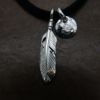 5. メタル付き 極小フェザー左向き×極小メタルチャーム×鹿革紐×アンティークビーズ/ネックレスカスタム