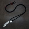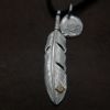 5. メタル付き 大フェザー左向き×小メタルチャーム×鹿革紐×アンティークビーズ/ネックレスカスタム