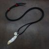 5. 大フェザー(コンビ)右向き×小メタルチャーム(コンビ)×鹿革紐×アンティークビーズ/ネックレスカスタム