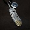 7. 大フェザー(コンビ)右向き×小メタルチャーム(コンビ)×鹿革紐×アンティークビーズ/ネックレスカスタム