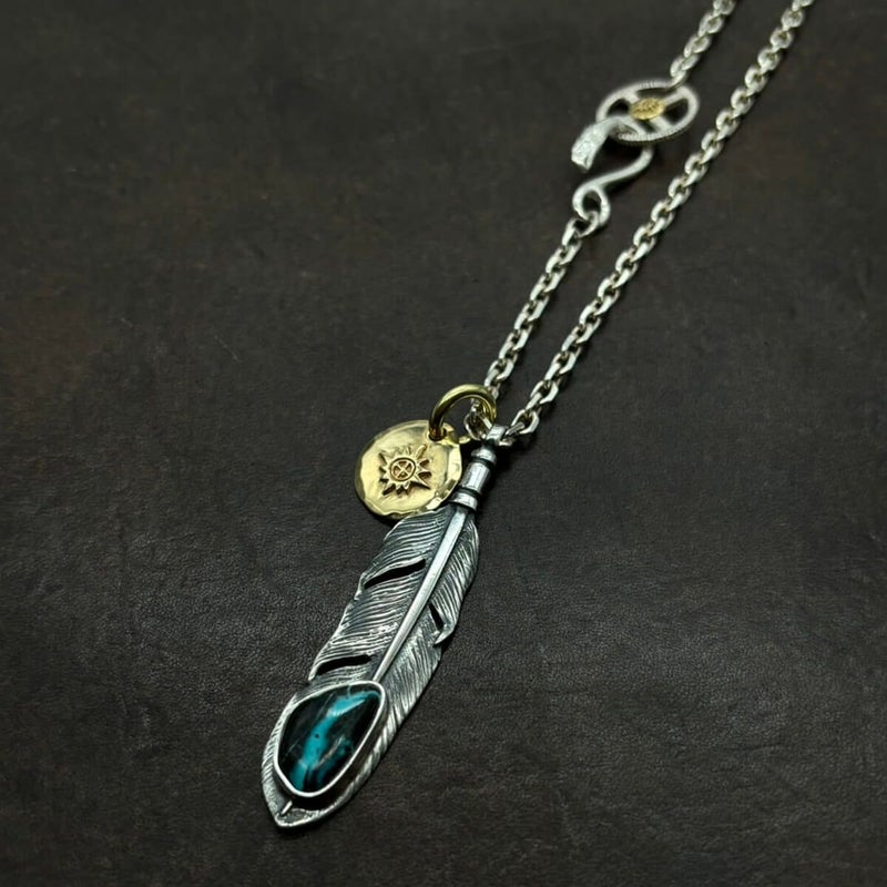 ターコイズ付き大フェザー×小メタルチャーム/ネックレスカスタム