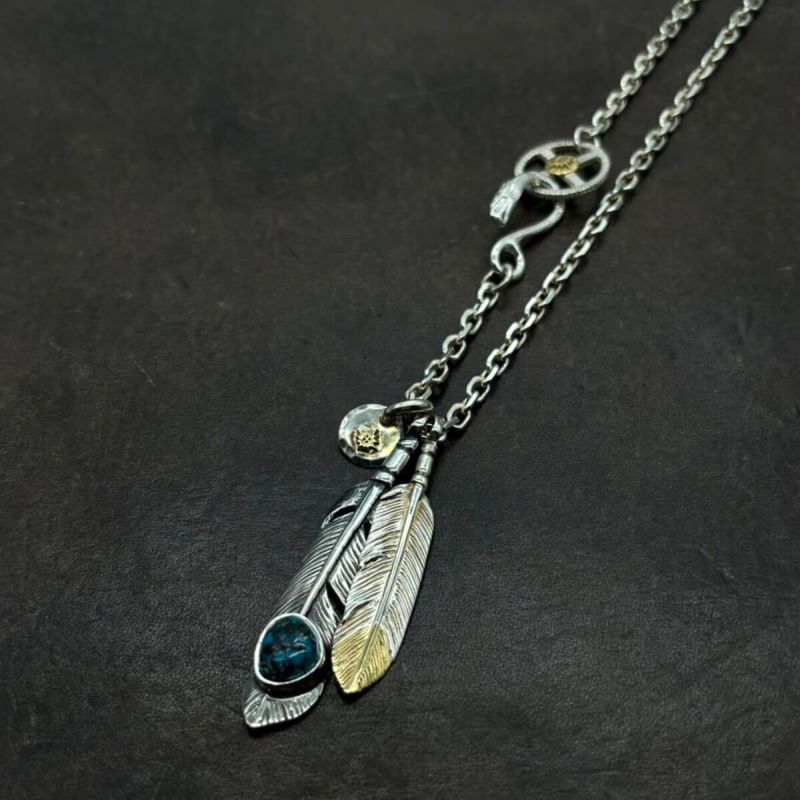 ターコイズ付き中フェザー×小フェザー×極小メタルチャーム/ネックレスカスタム
