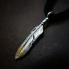 極小フェザー(コンビ)左向き×鹿革紐×アンティークビーズ/ネックレスカスタム
