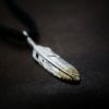 5. 極小フェザー(コンビ)左向き×鹿革紐×アンティークビーズ/ネックレスカスタム