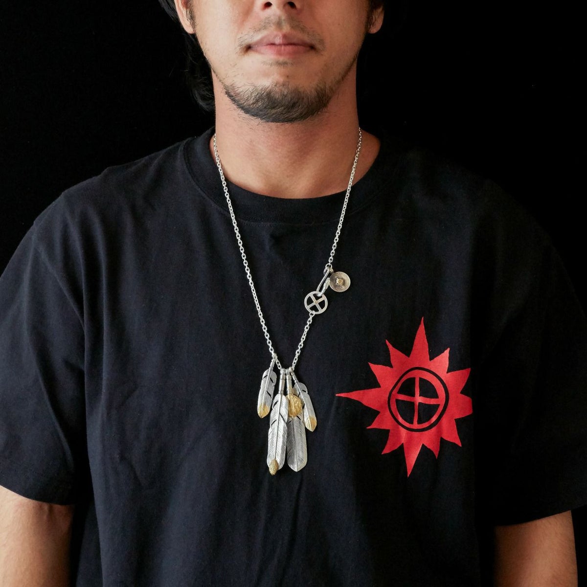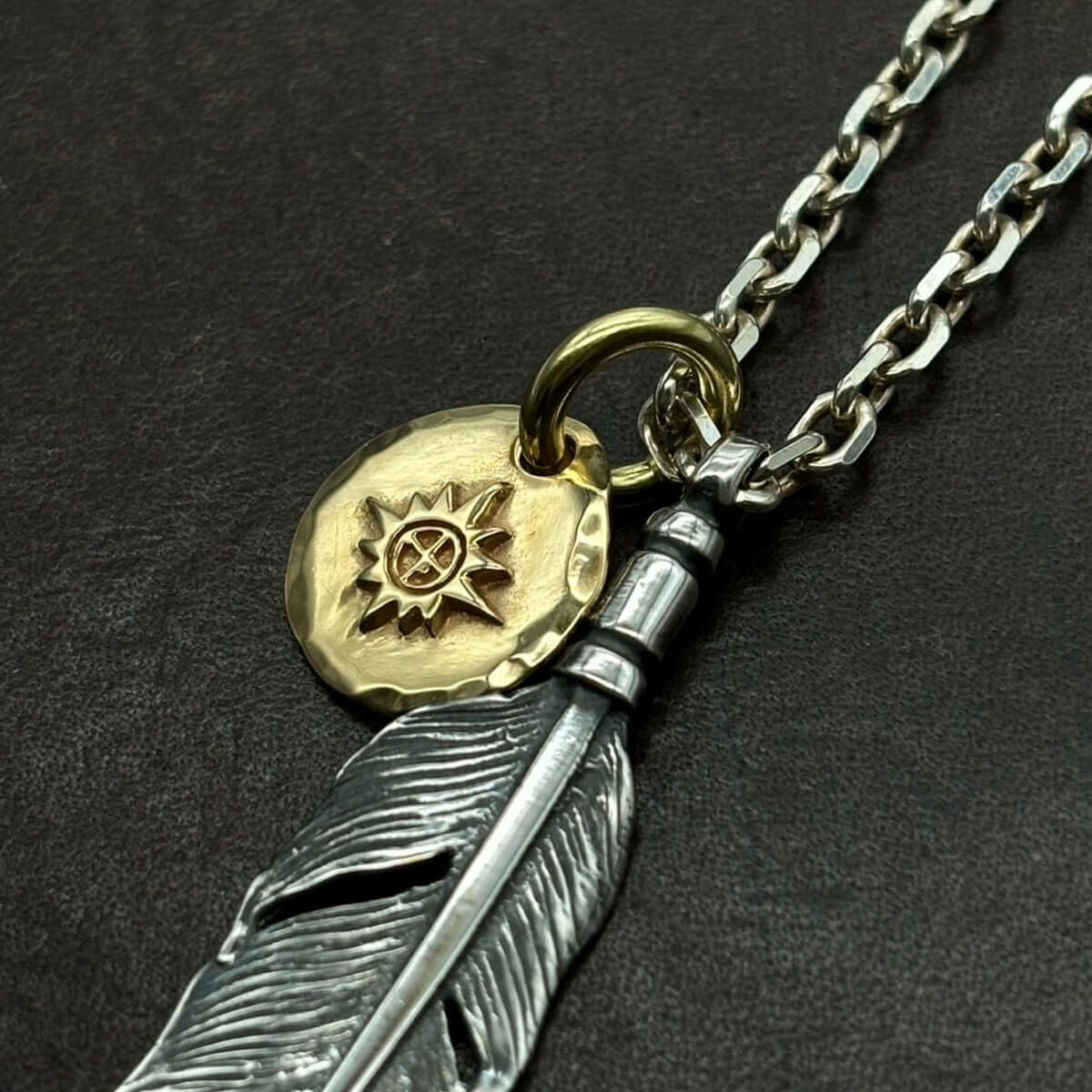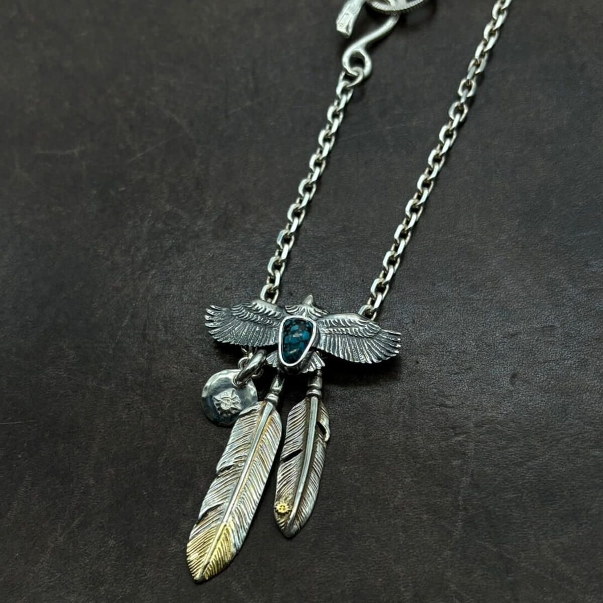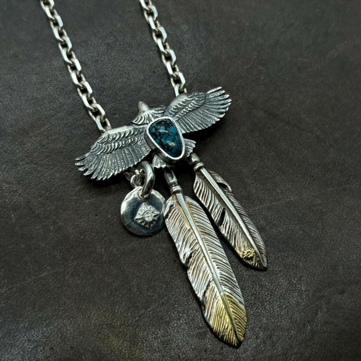 ターコイズ付き極小ヤングイーグル×極小メタルチャーム×メタル付き極小フェザー×小フェザー/ネックレスカスタム