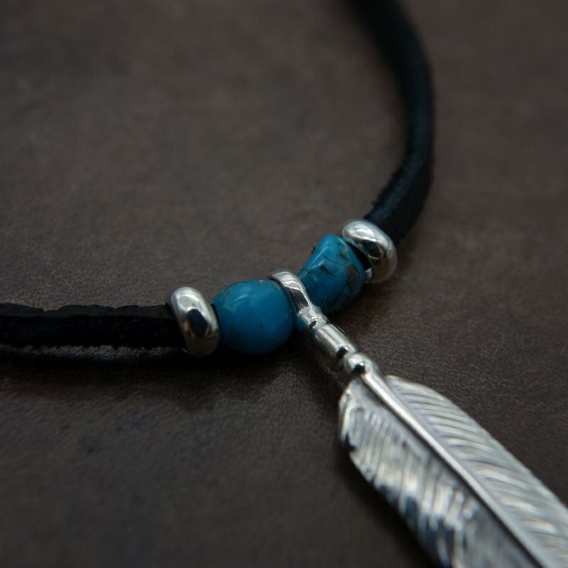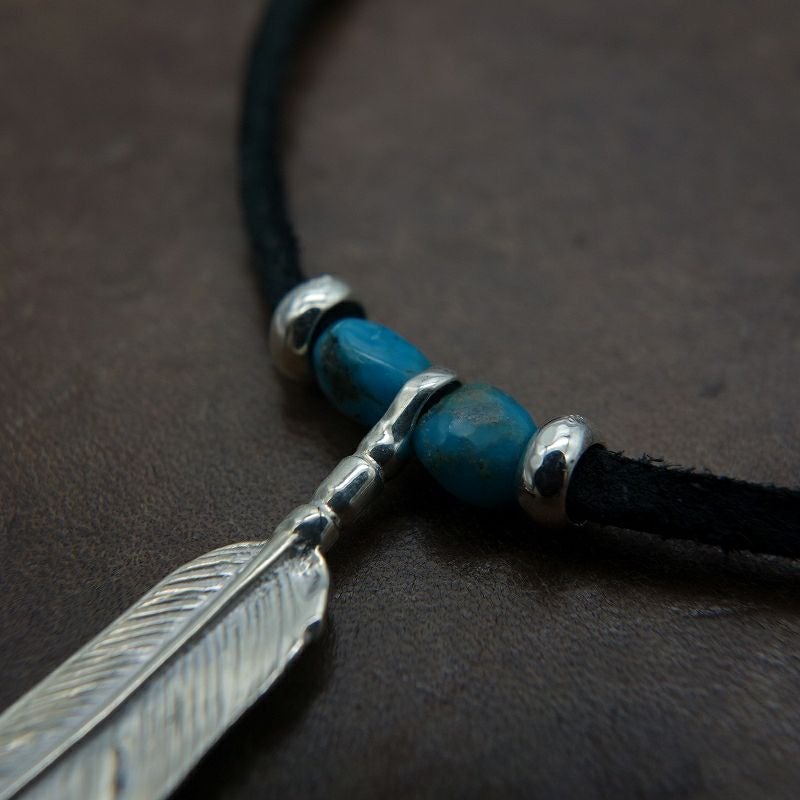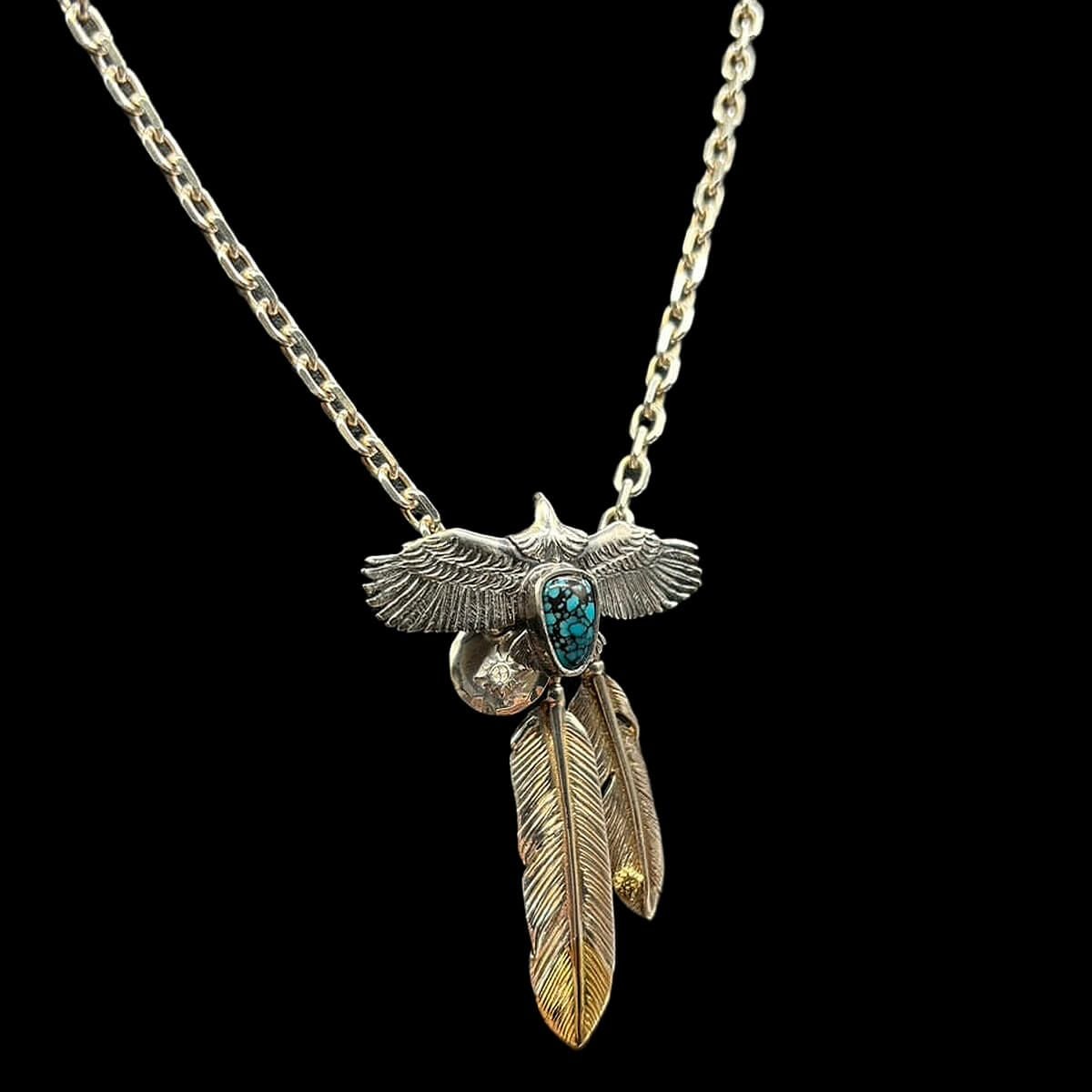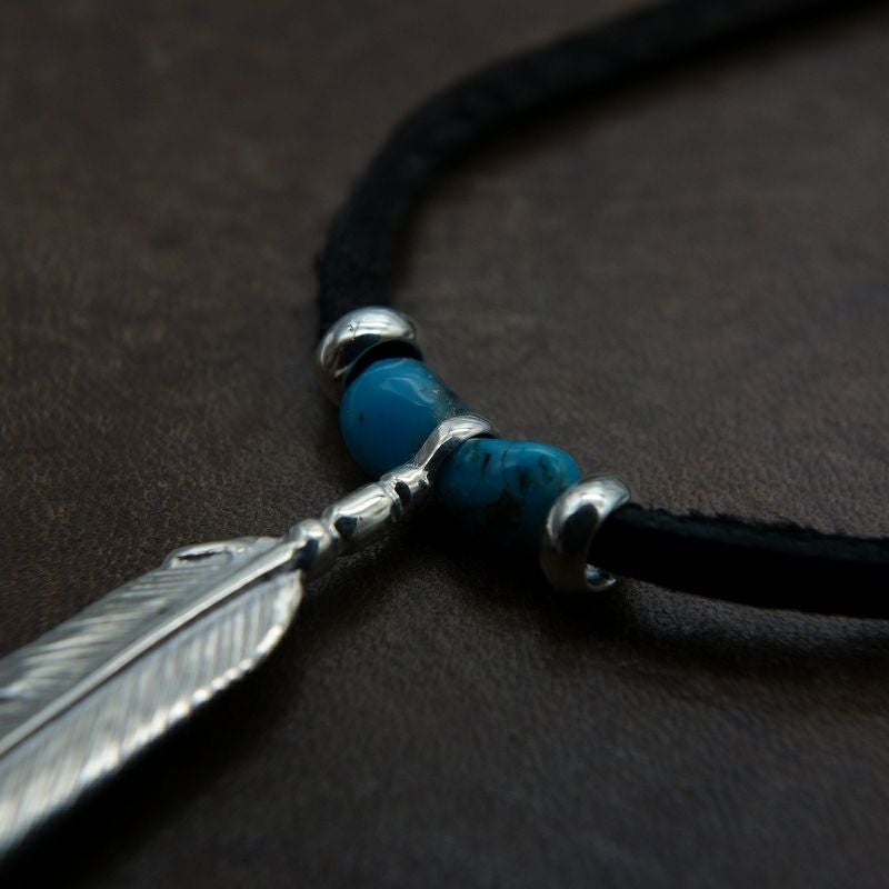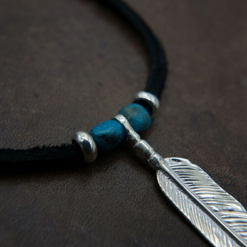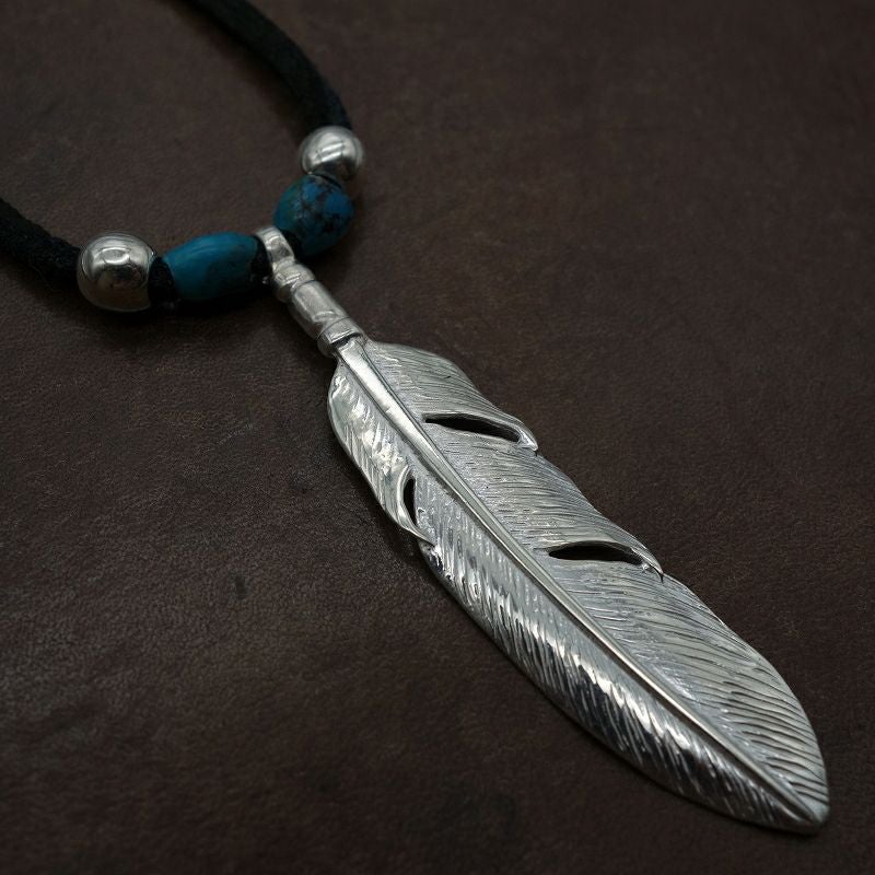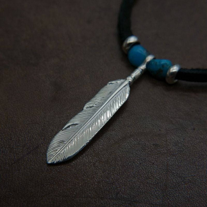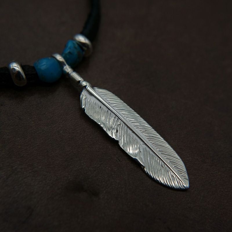 ターコイズ/メタル付き大フェザー×プレイングイーグルフェザーヘッド/ネックレスカスタム