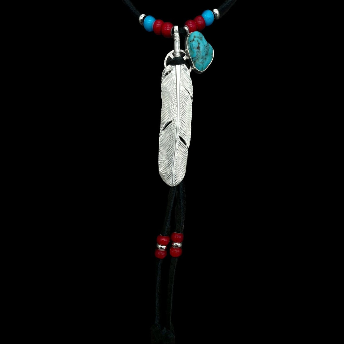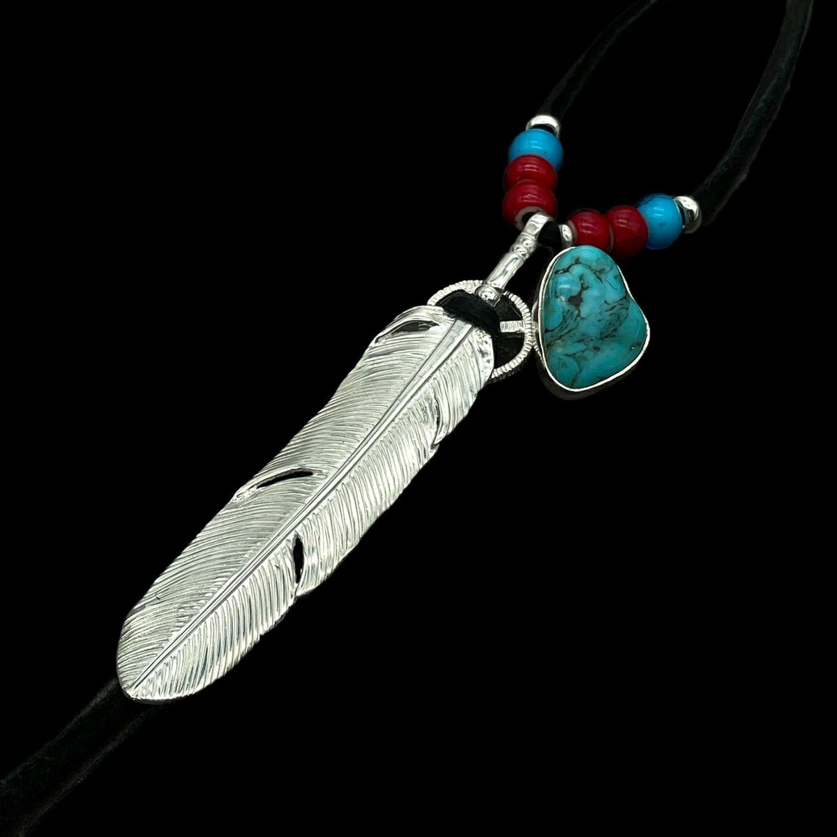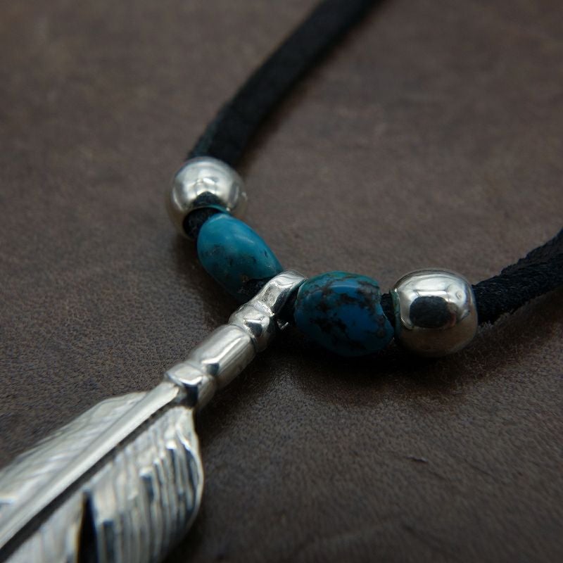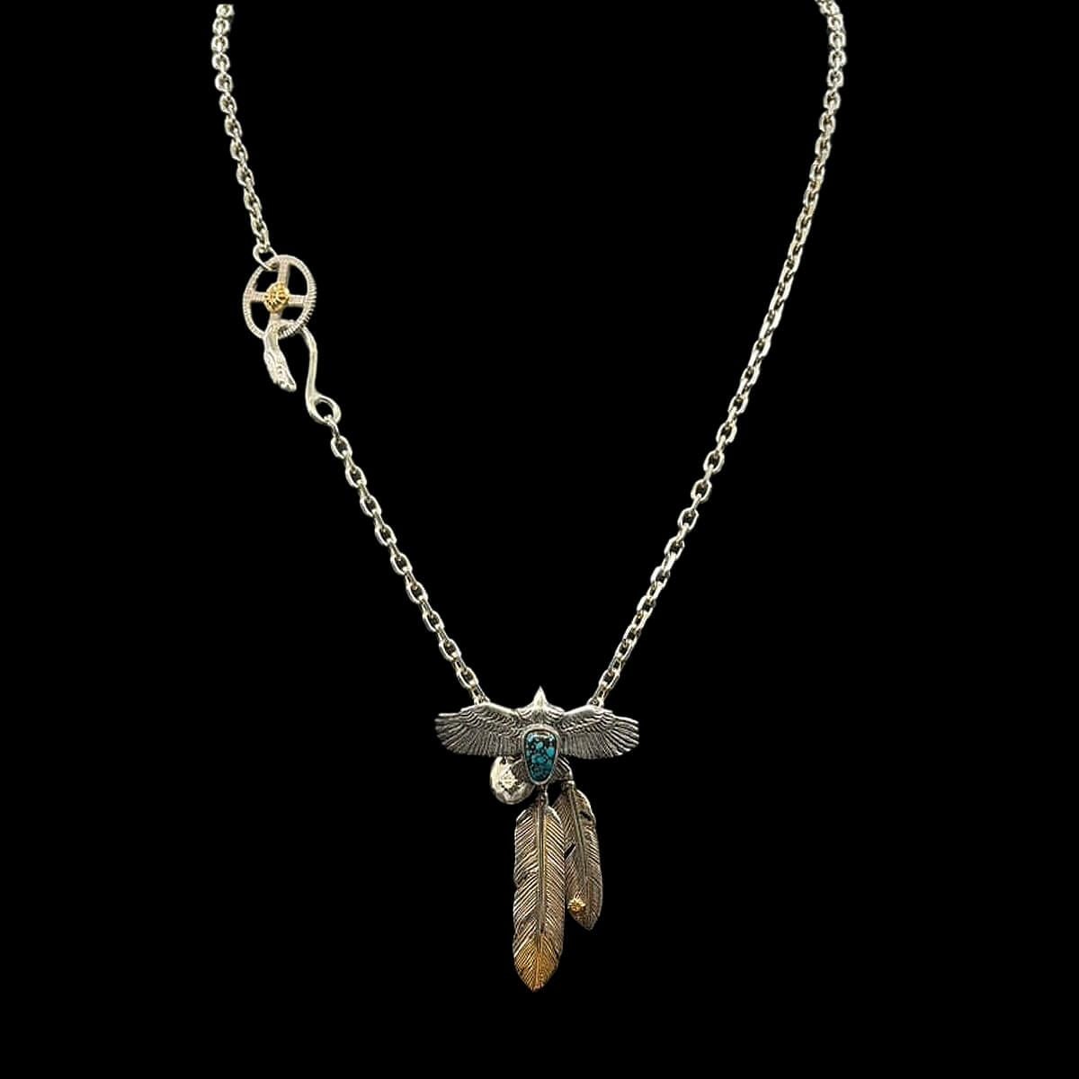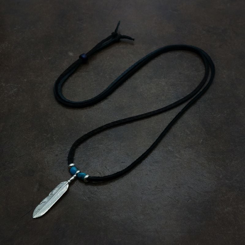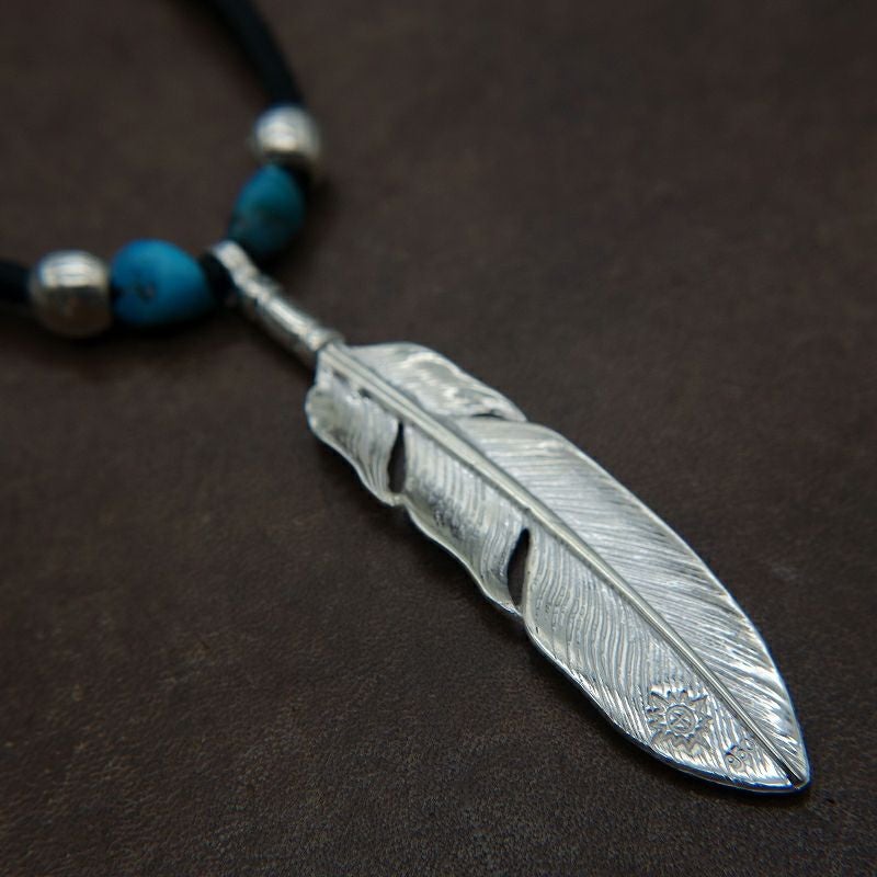 ターコイズ/メタル付き大フェザー×プレイングイーグルフェザーヘッド/ネックレスカスタム