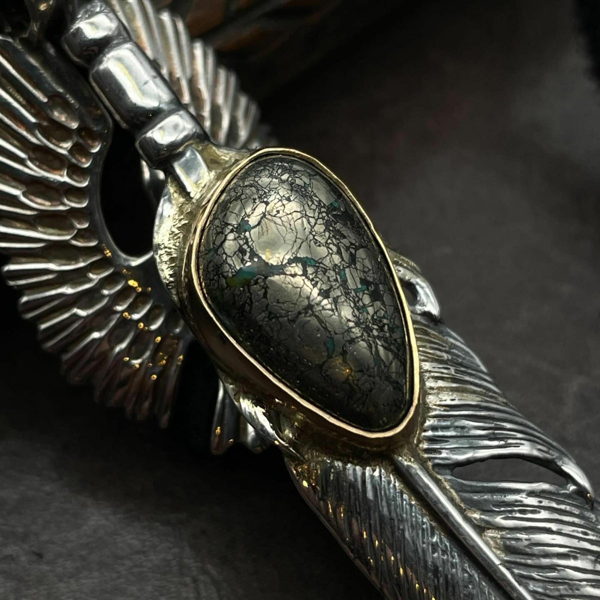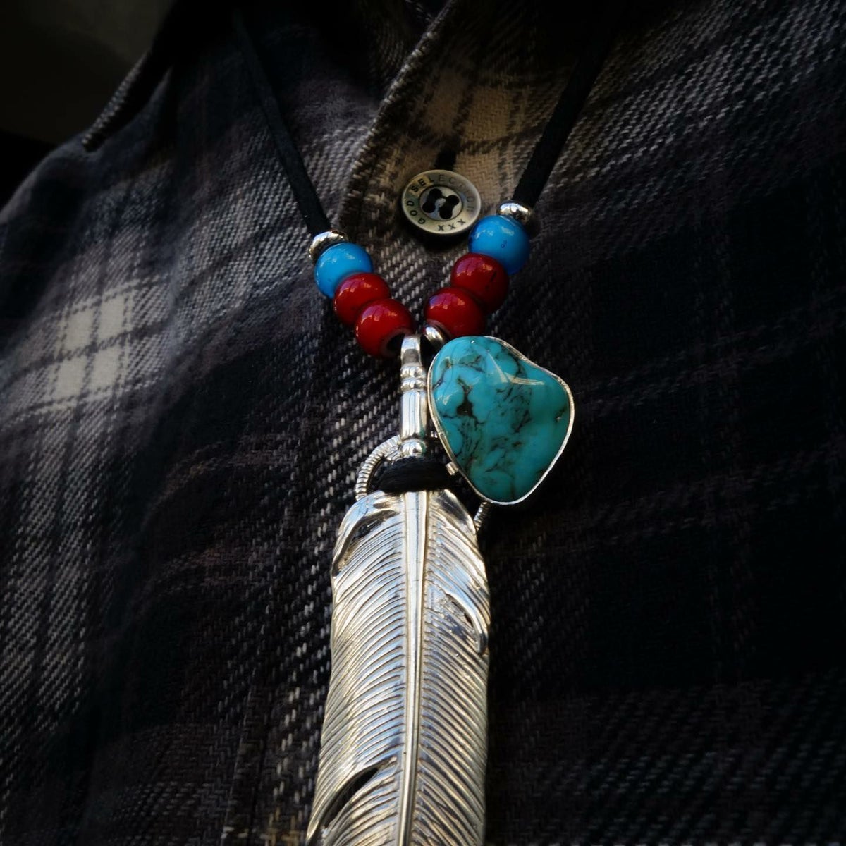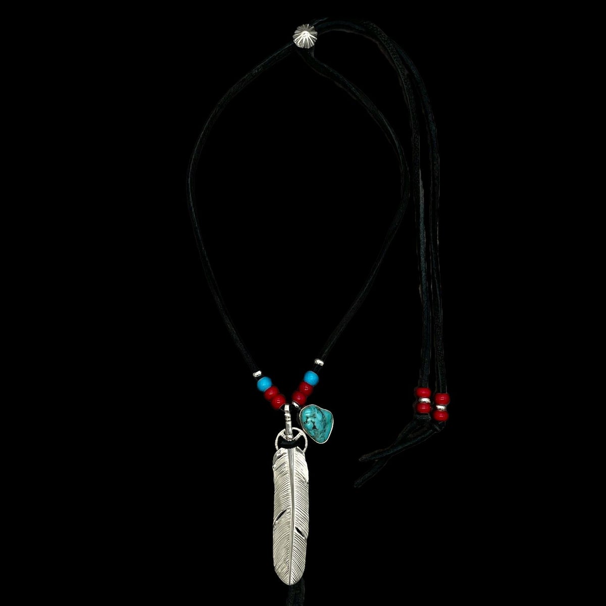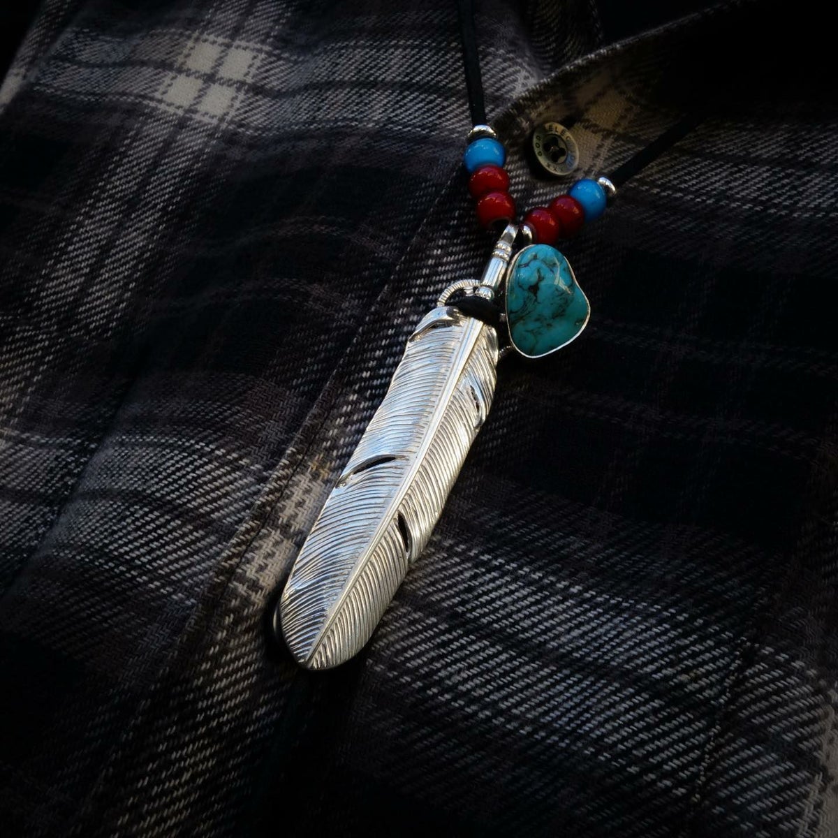 ターコイズ/メタル付き大フェザー×プレイングイーグルフェザーヘッド/ネックレスカスタム