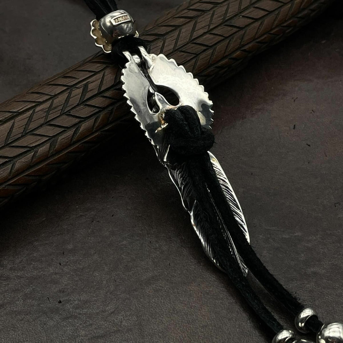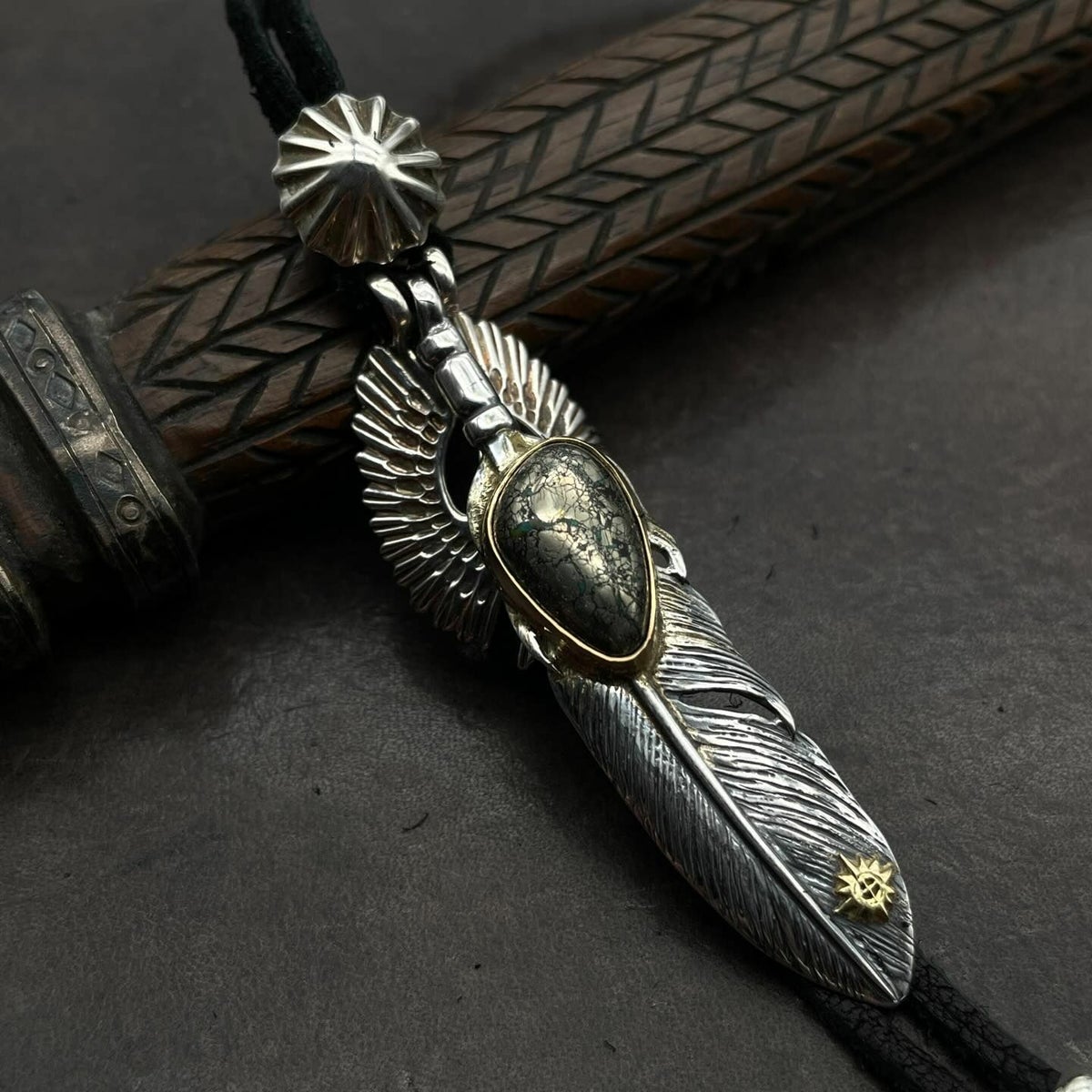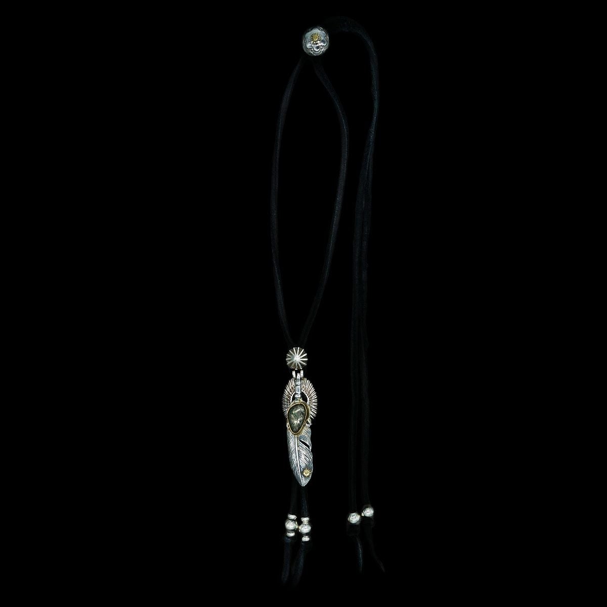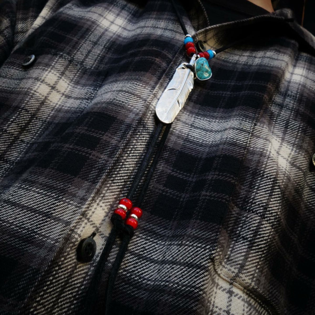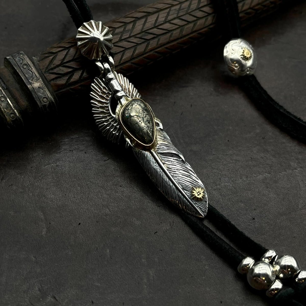 ターコイズ/メタル付き大フェザー×プレイングイーグルフェザーヘッド/ネックレスカスタム