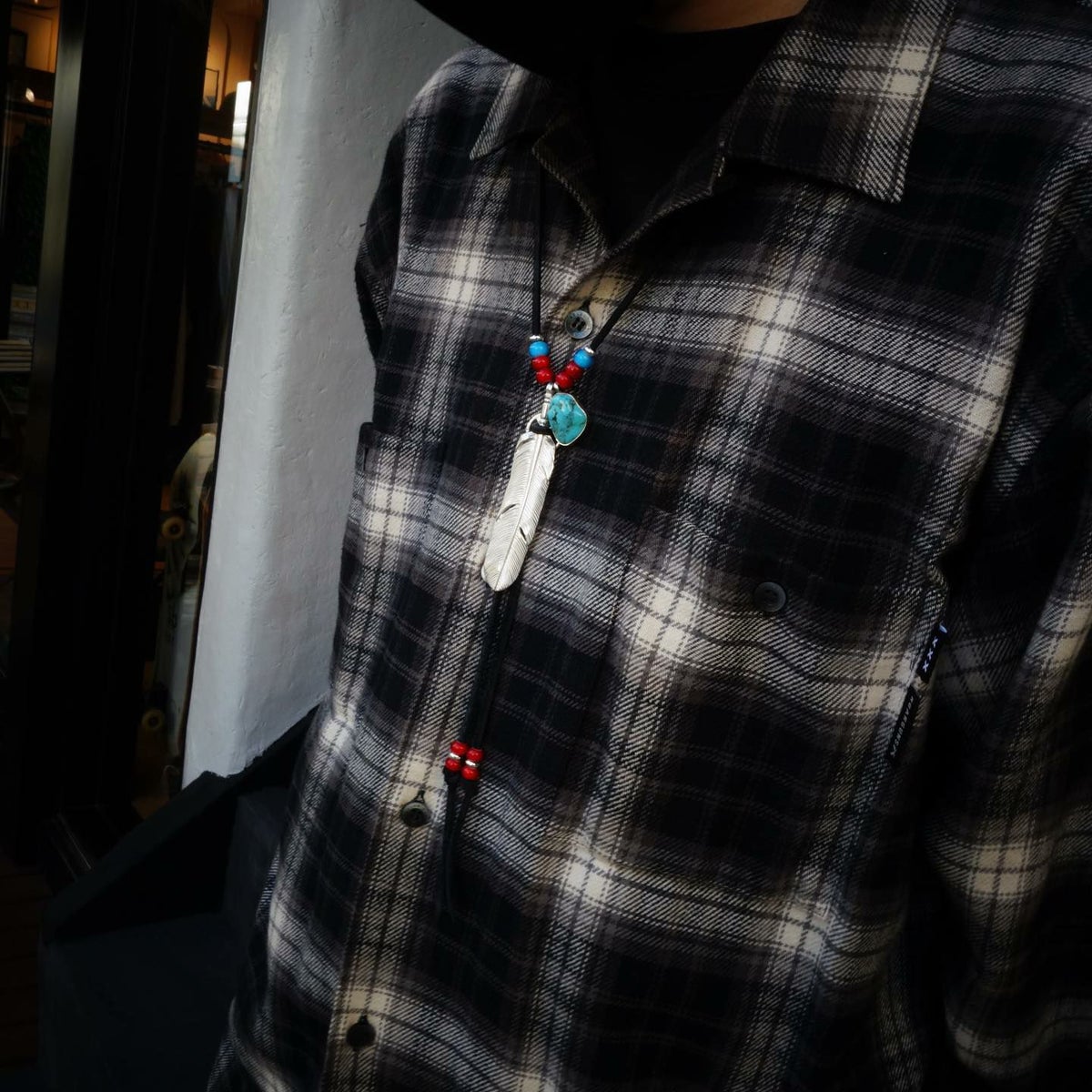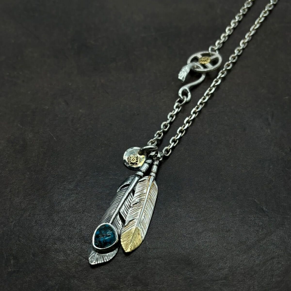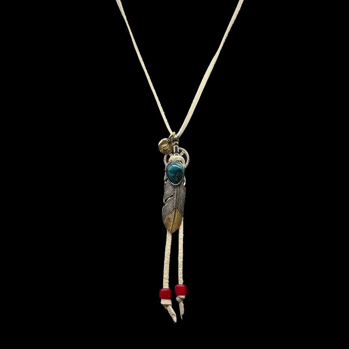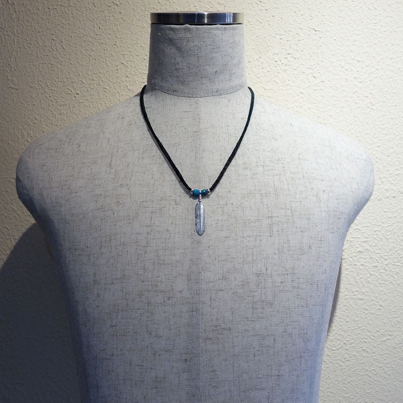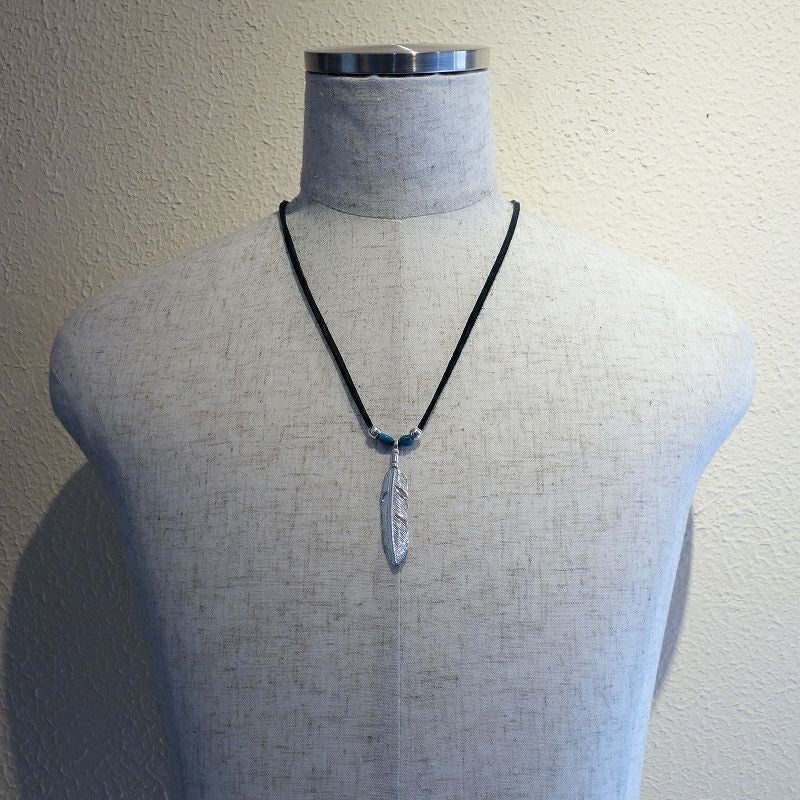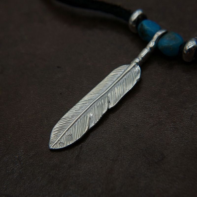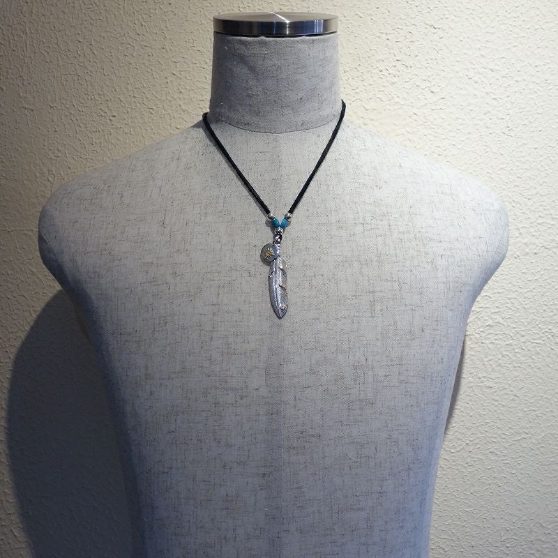 ターコイズ付き大フェザー×小メタルチャーム/ネックレスカスタム