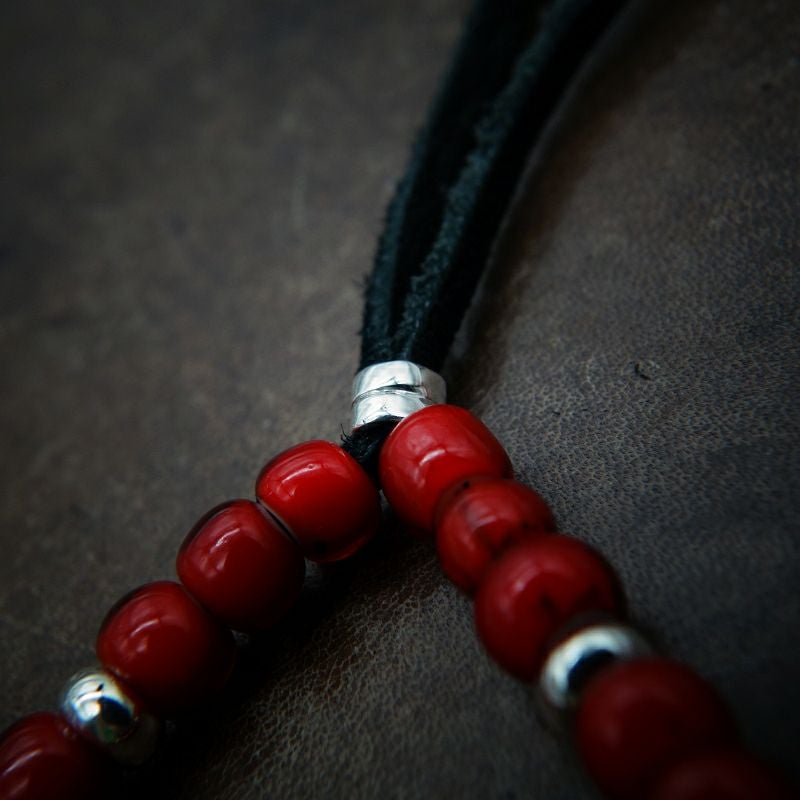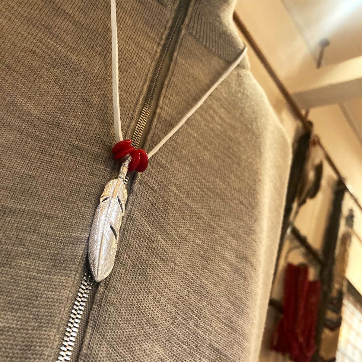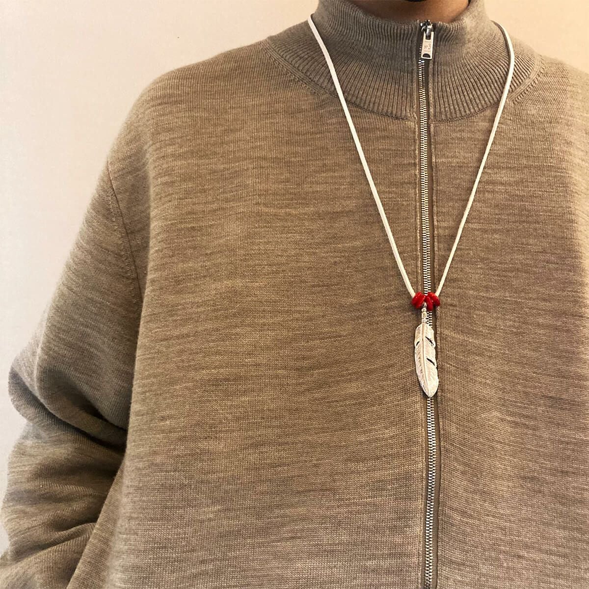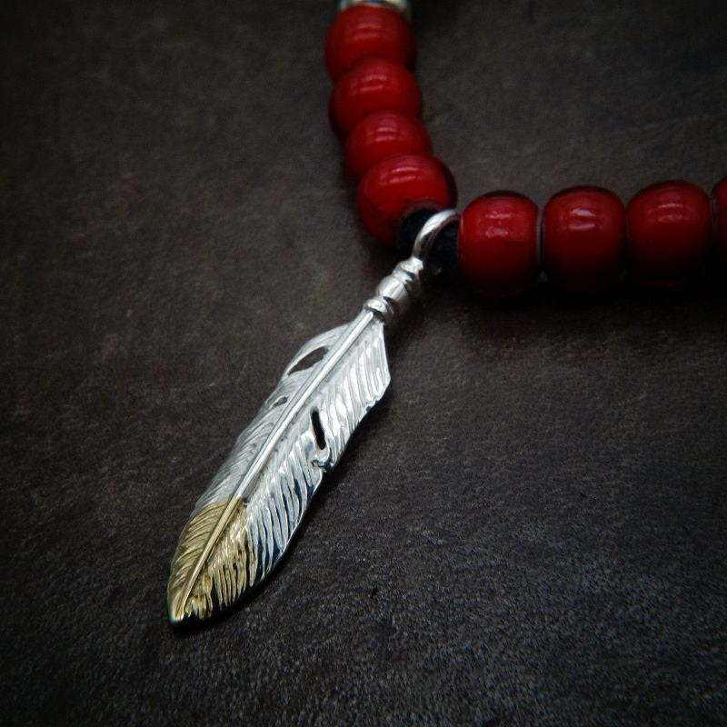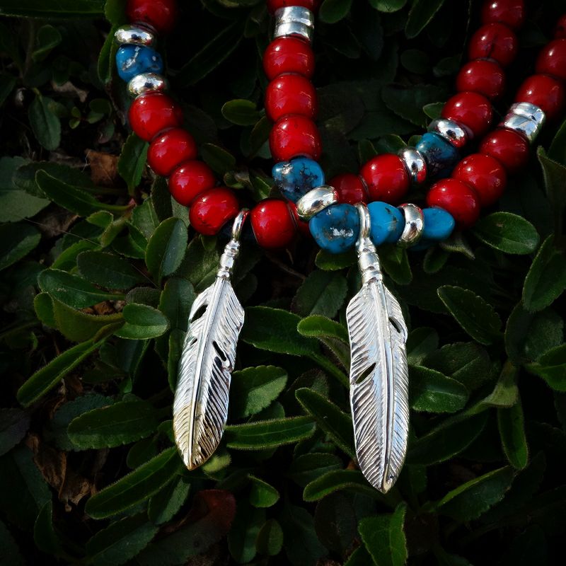 大フェザー×コーラルビーズ/ネックレスカスタム