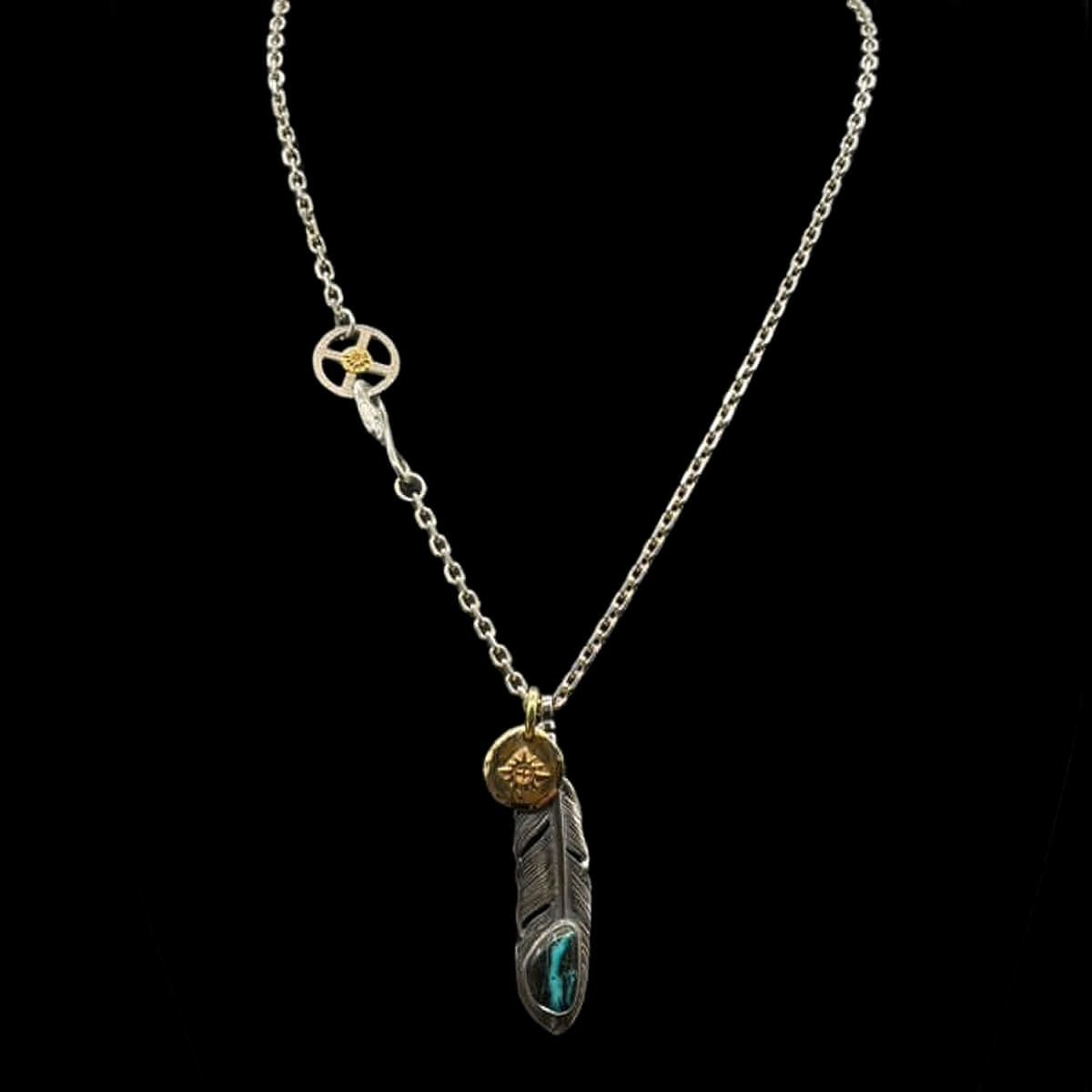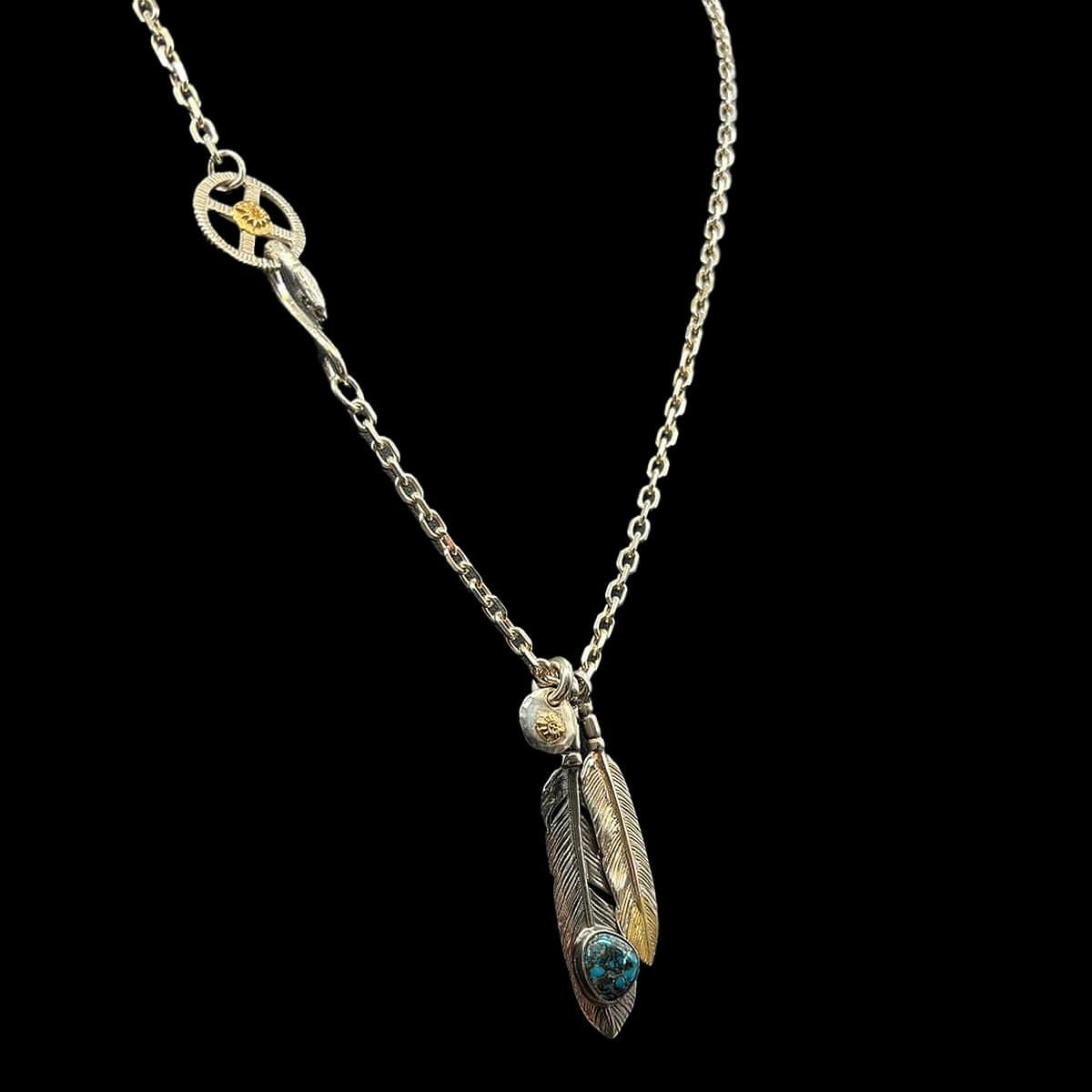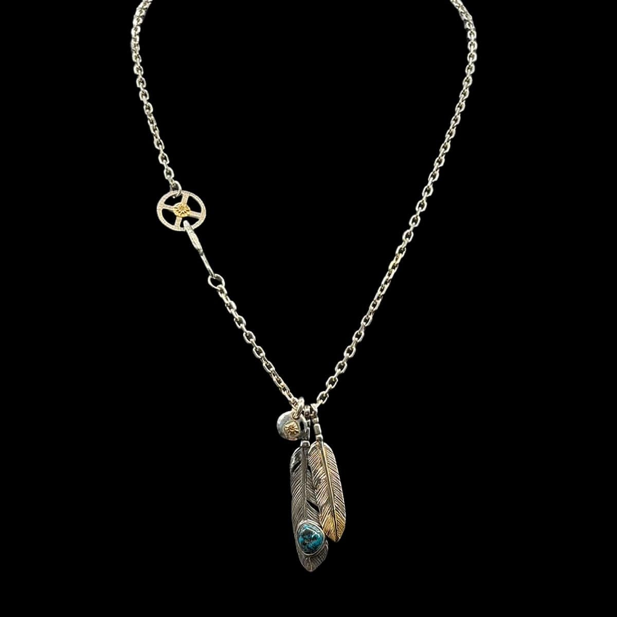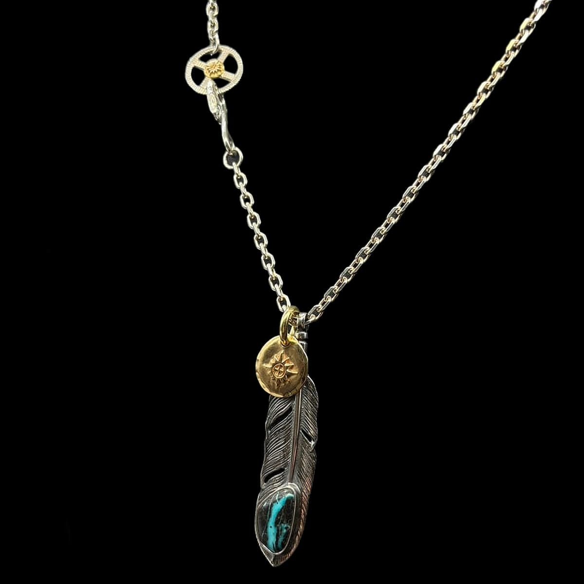 特大フェザー×ターコイズペンダントトップ×小ホイール/ネックレスカスタム