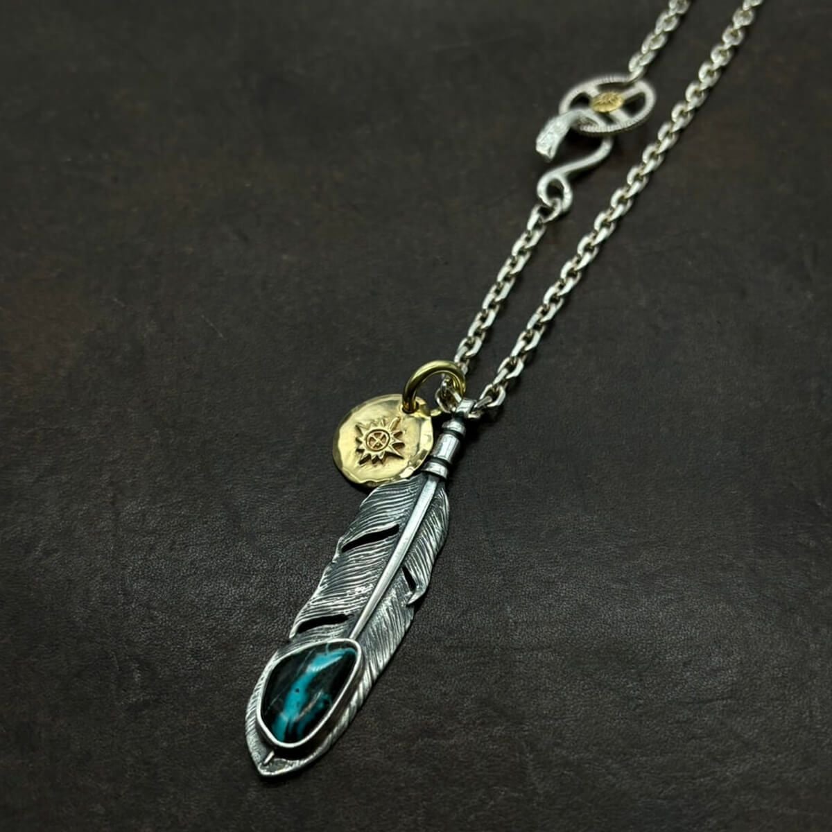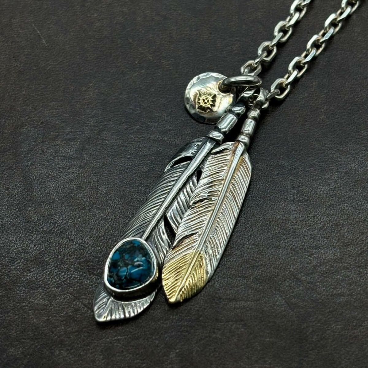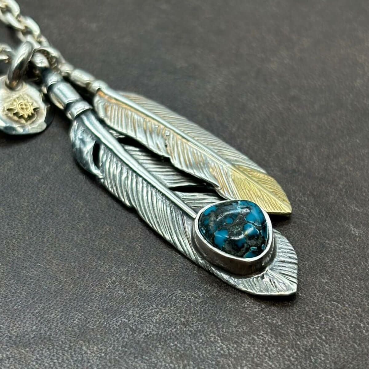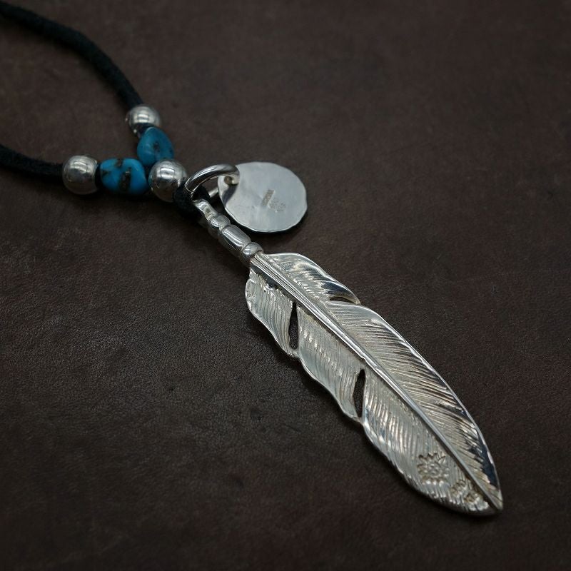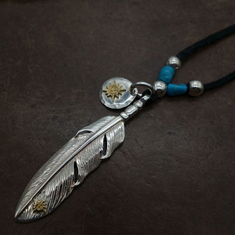 特大フェザー×ターコイズペンダントトップ×小ホイール/ネックレスカスタム