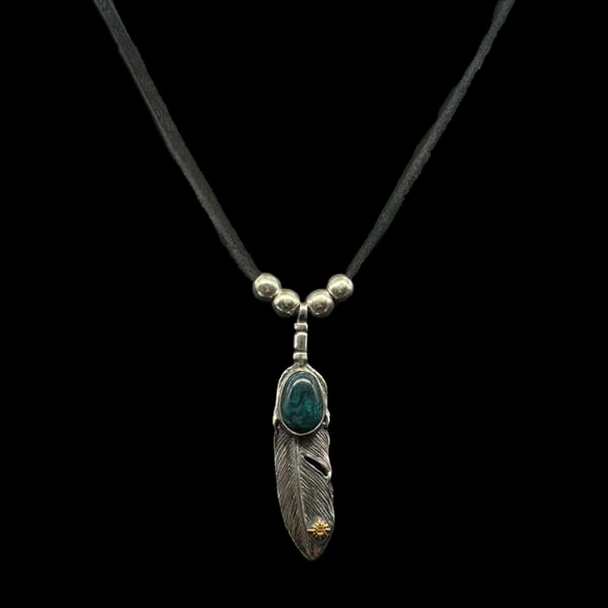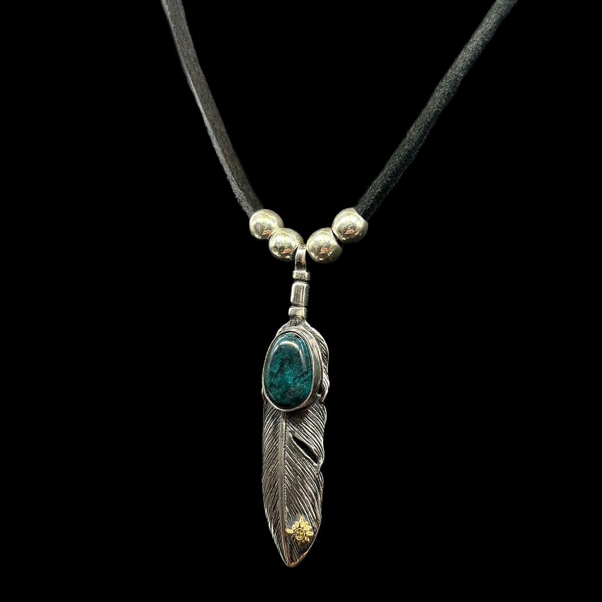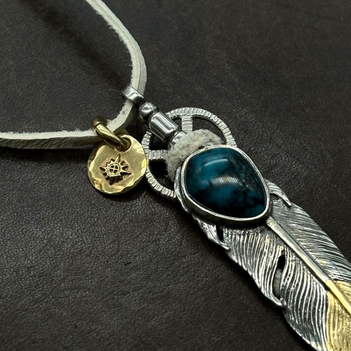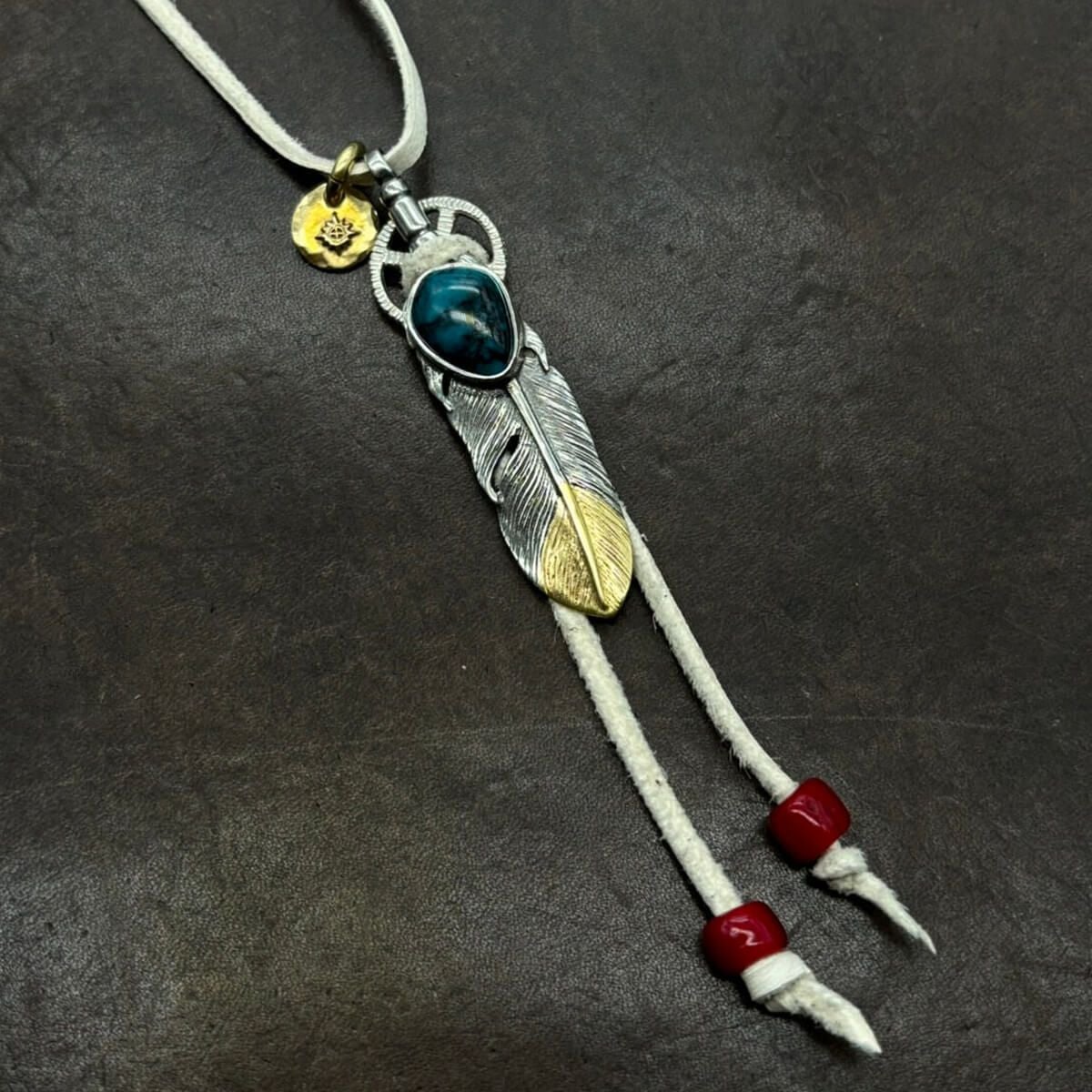 特大フェザー×ターコイズペンダントトップ×小ホイール/ネックレスカスタム
