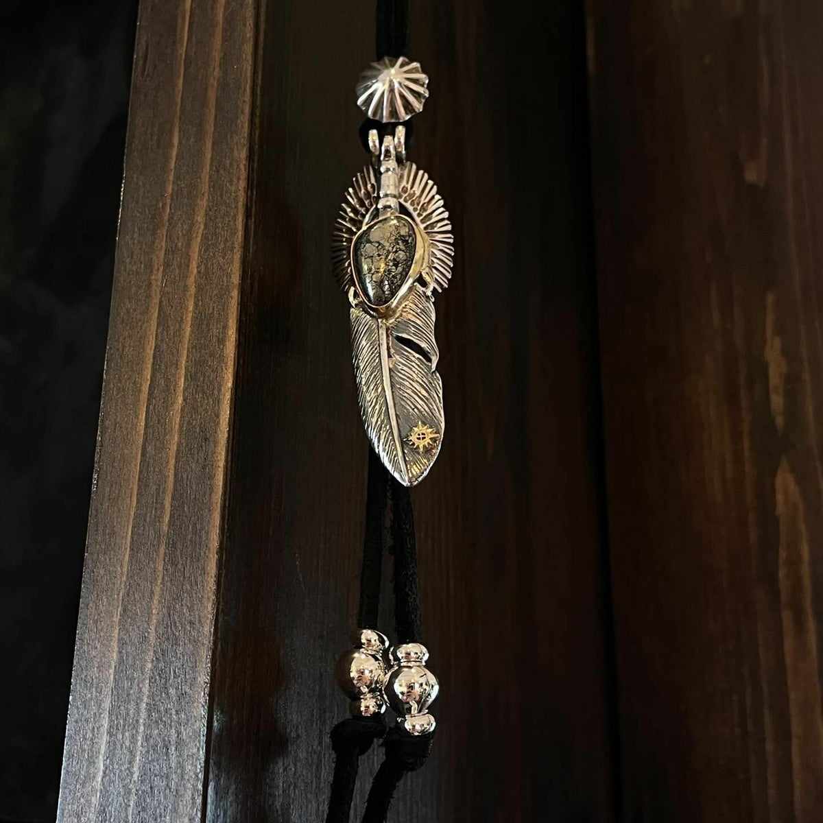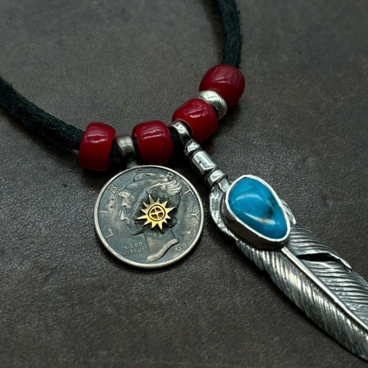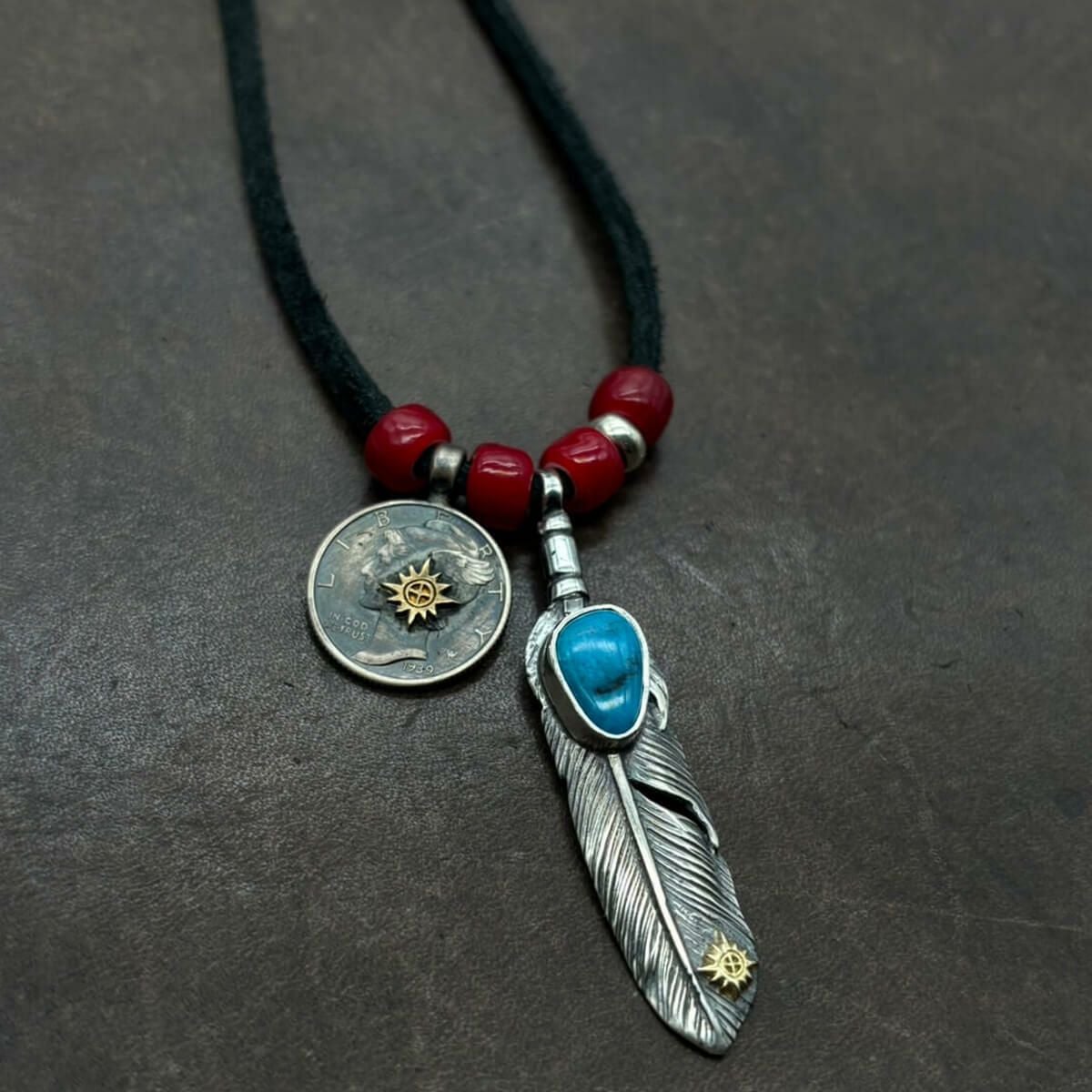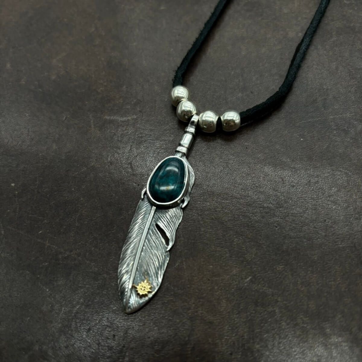 特大フェザー×ターコイズペンダントトップ×小ホイール/ネックレスカスタム