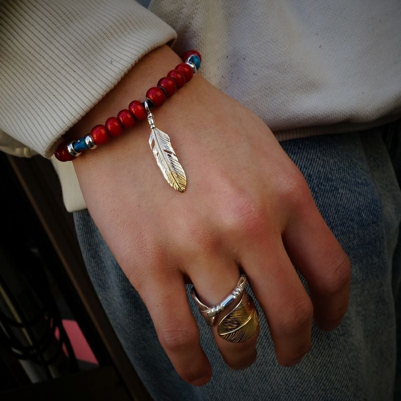 ターコイズビーズカスタム / メタル付き 大フェザー左 +小メタルチャーム