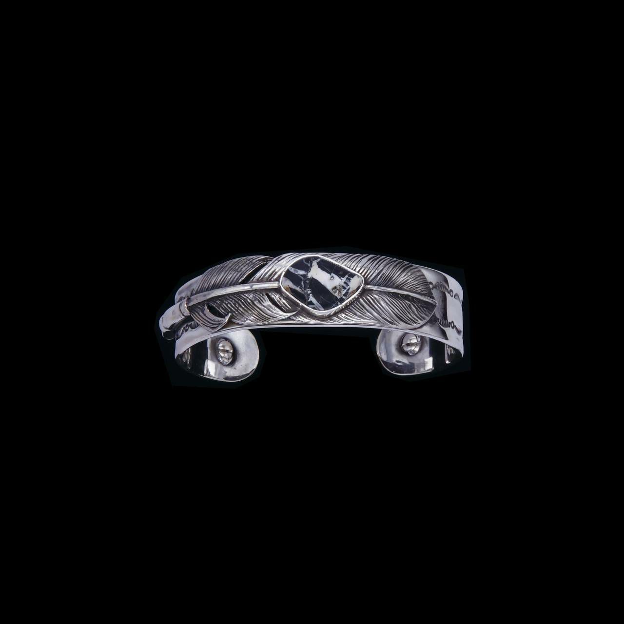 ホワイトバッファロー付きフェザーバングル