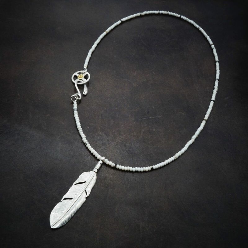 珍しいホワイトバッファローのビーズを使用したネックレス。ペンダントトップが通るビーズサイズの為、様々なカスタムをお楽しみいただけます。