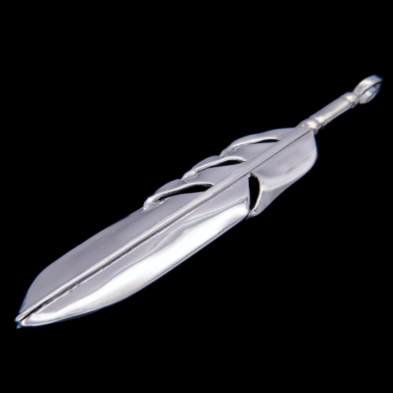 フェザーのラインが入らない、鏡面仕上げのソリッドなフェザー。経年変化を特に楽しむことができます。ストレートなシルエットで、存在感あるサイズです。