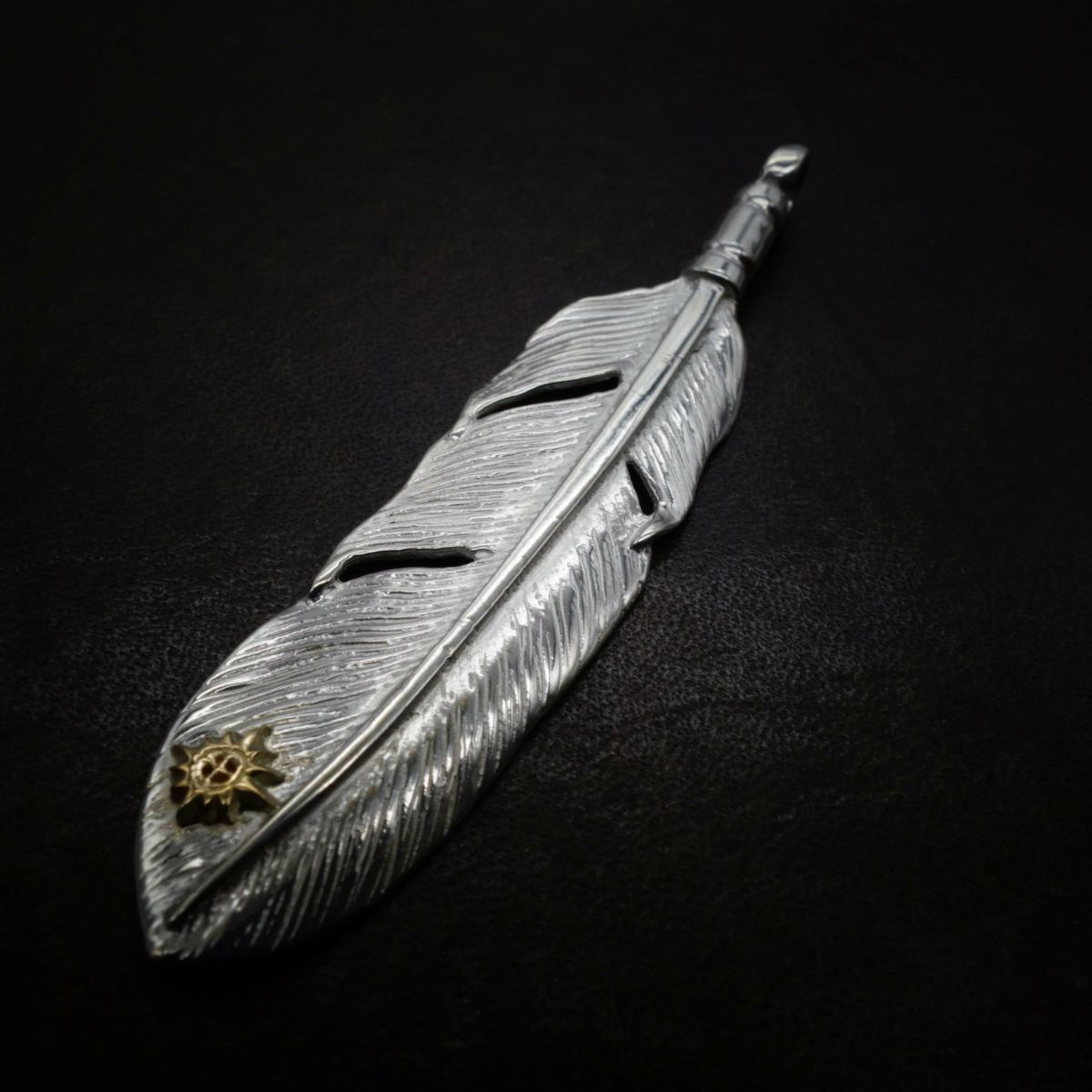 小フェザー左向き(メタル)×チェーン(小ホイール+イーグルヘッドフック)/ネックレスカスタム