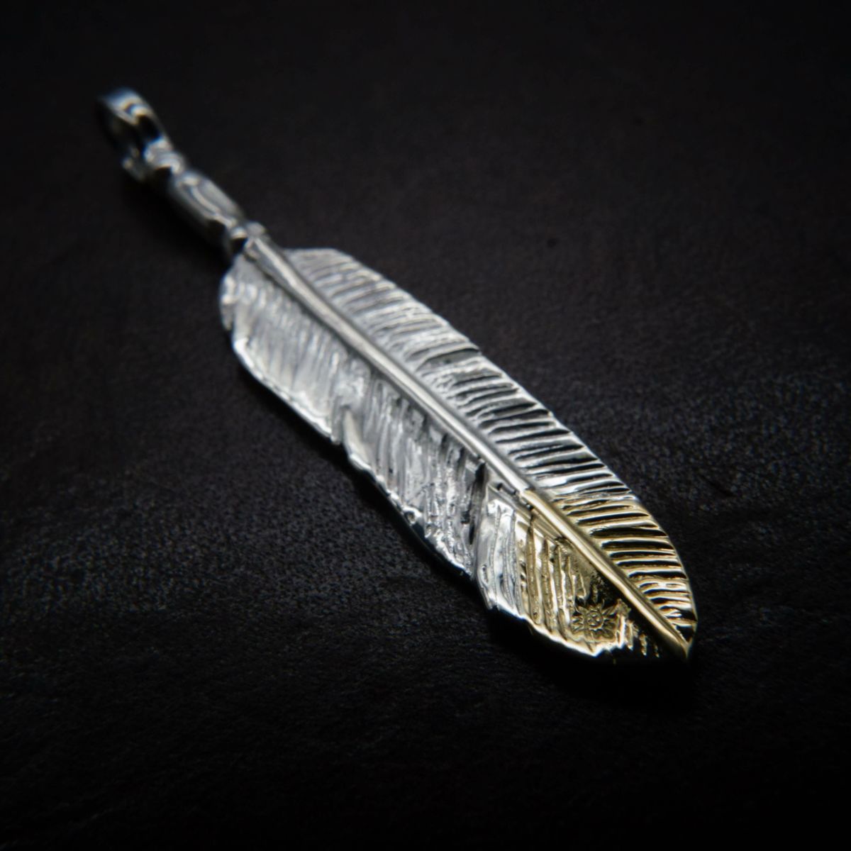 大フェザー左向き(コンビ)×チェーン(プレーンフープ+プレーンフック)/ネックレスカスタム