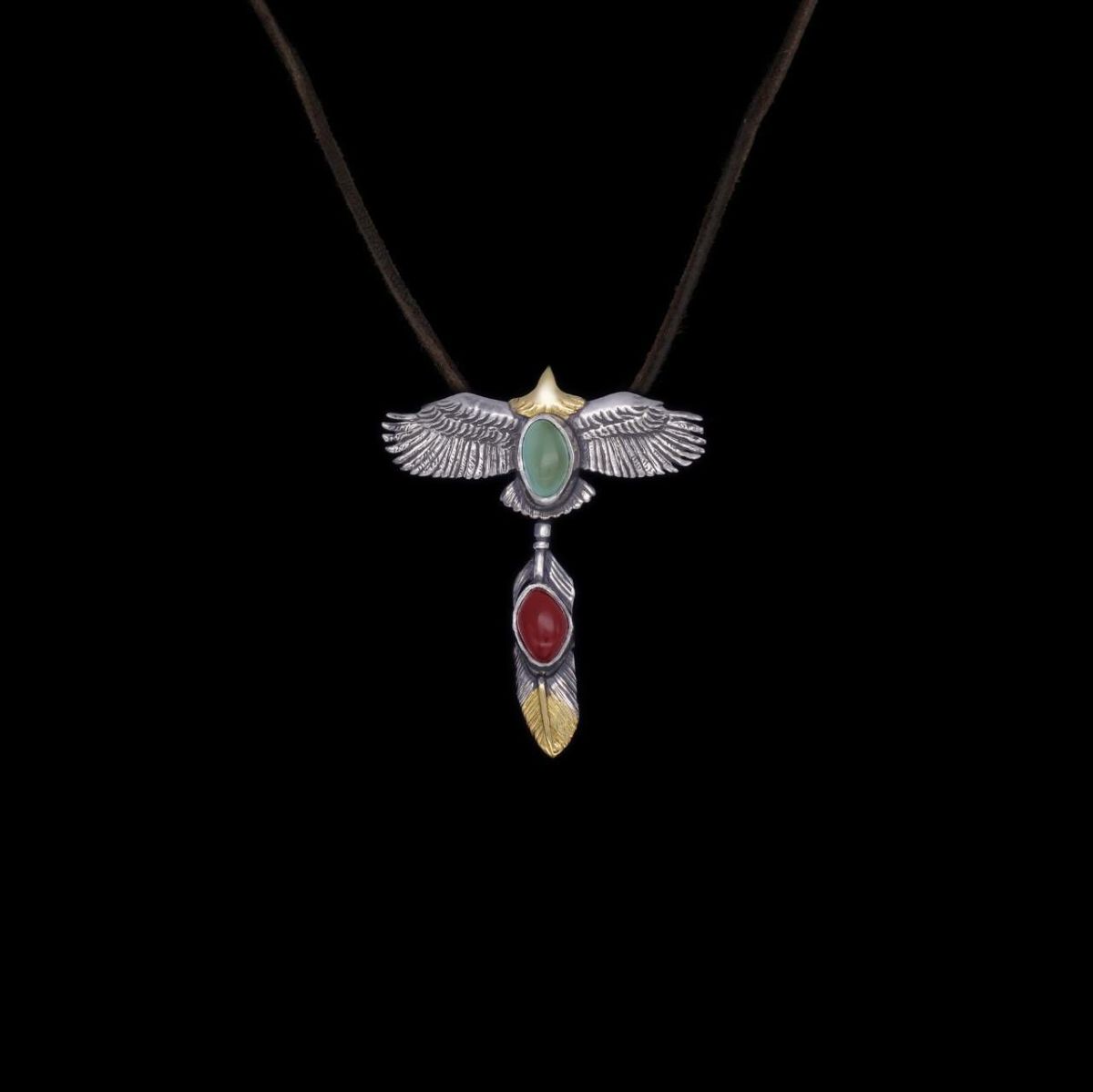 ターコイズ付き 大フェザー 右向き ペンダントトップ