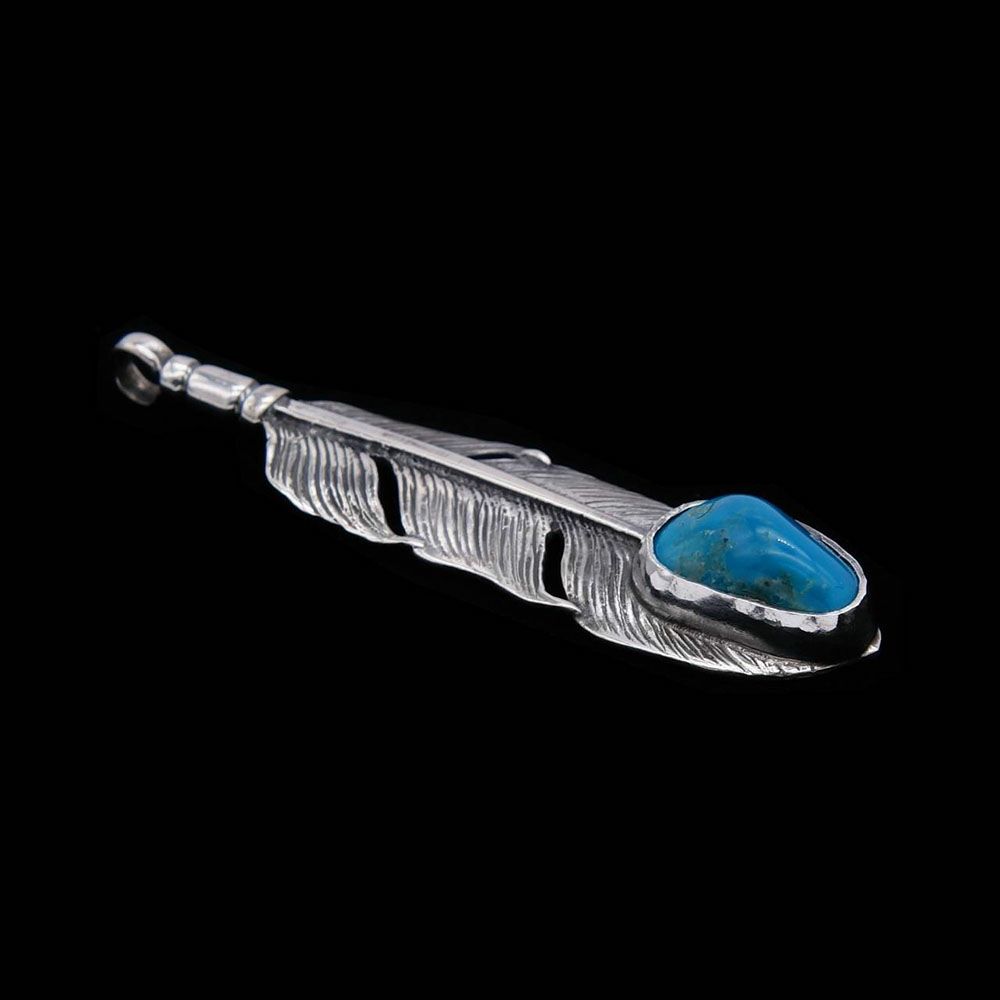 ターコイズ/メタル付き 中フェザー 右向き ペンダントトップ